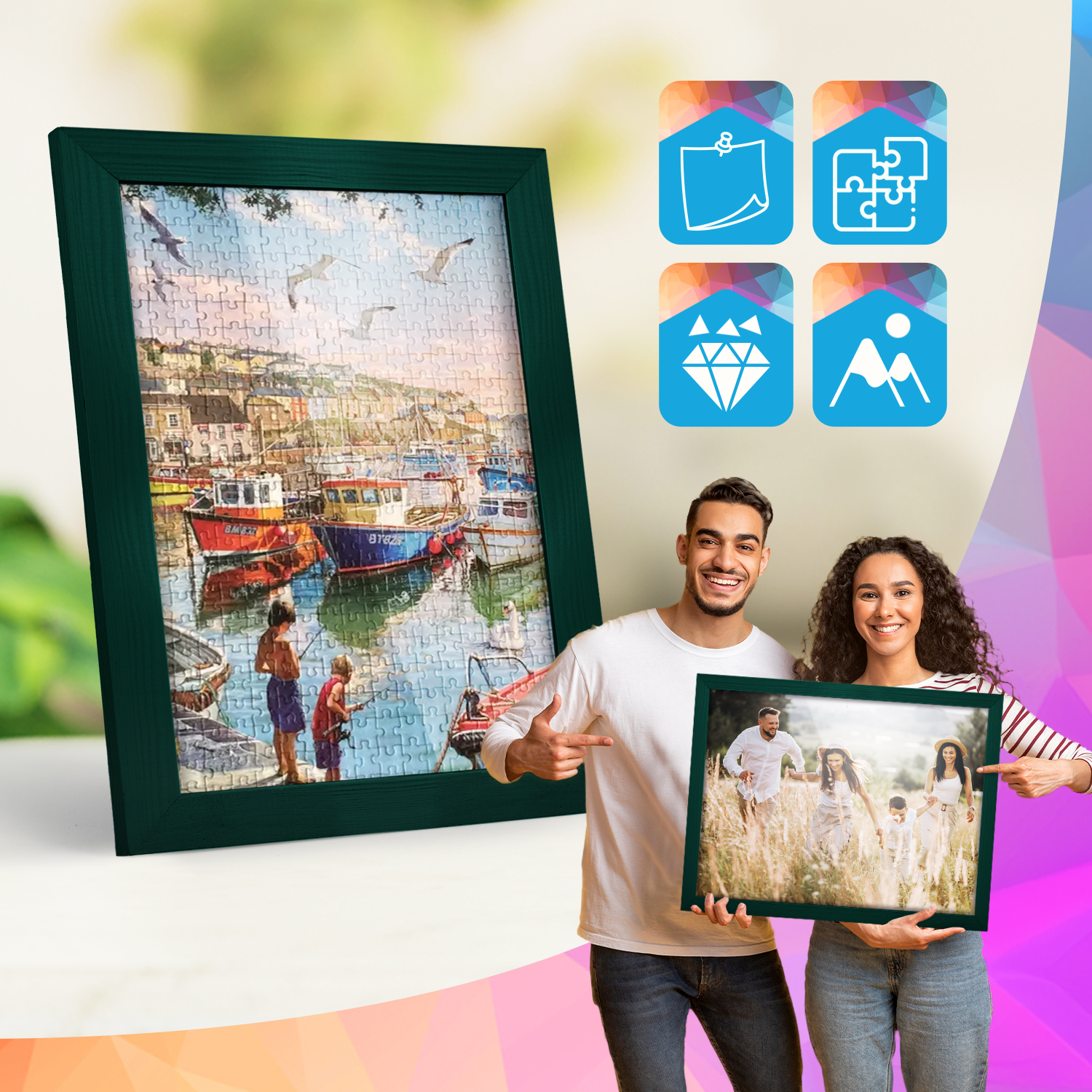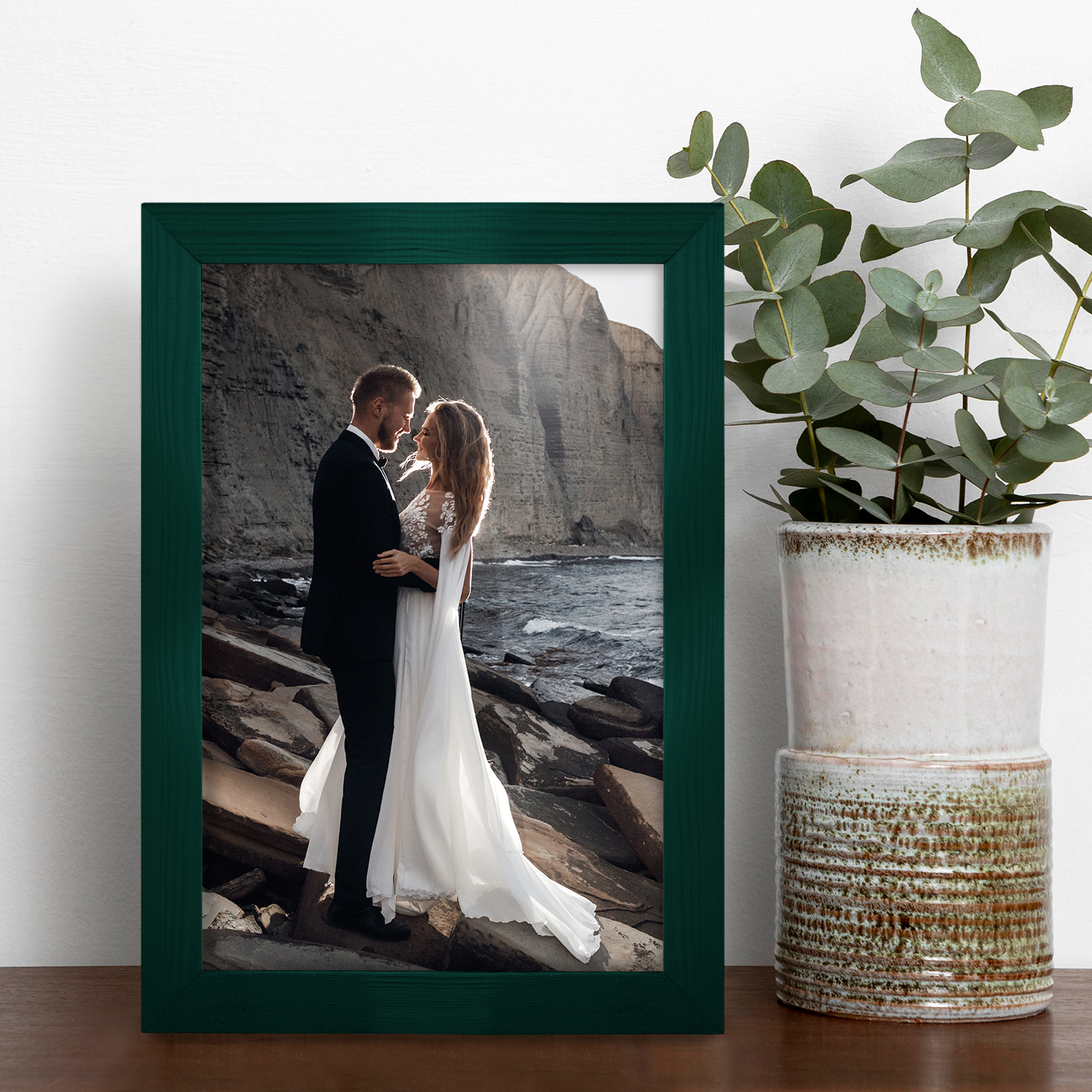 Zestaw 10 szt. ramek na zdjęcia 15 x 23 cm zielonych, z naturalnego drewna