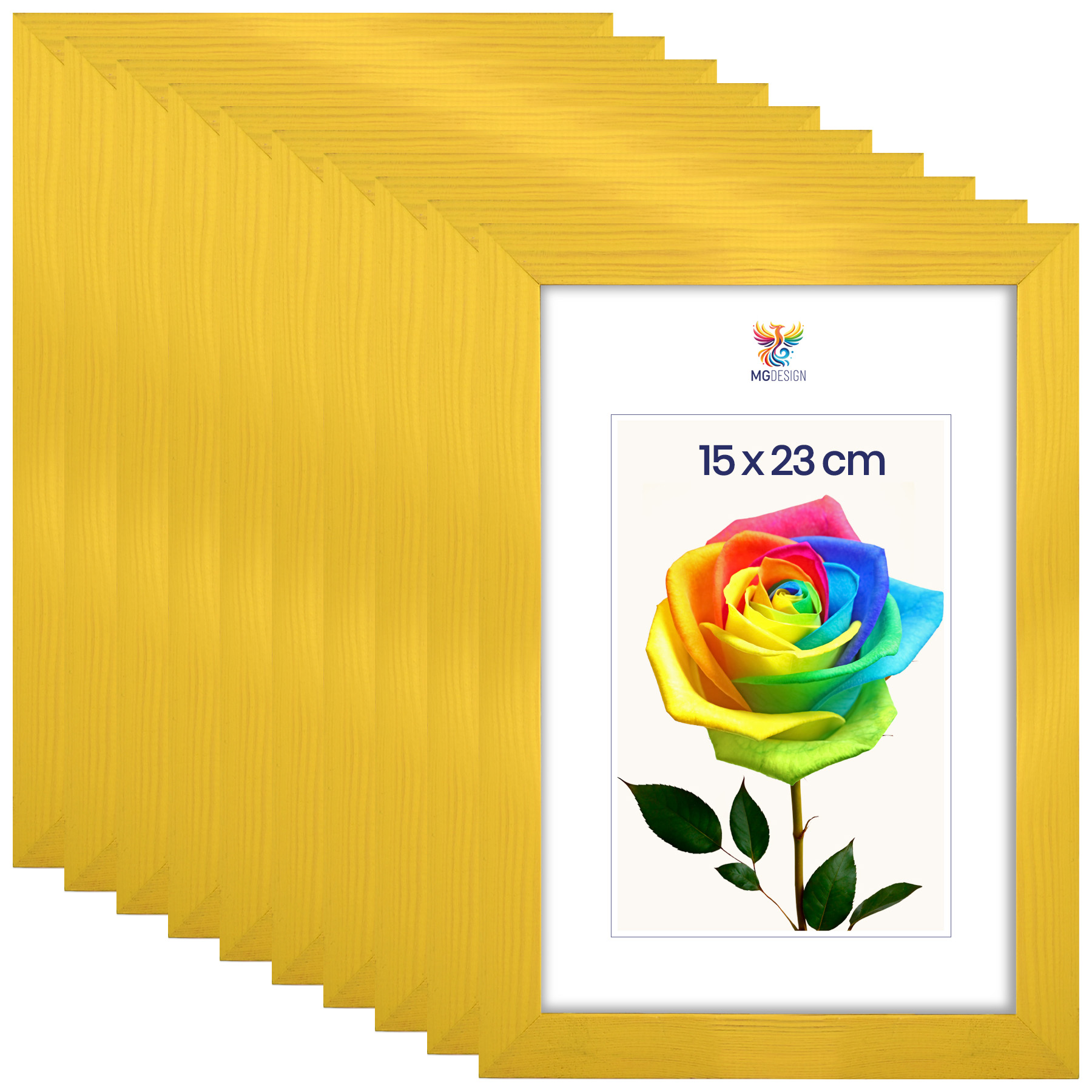 Zestaw 10 szt. ramek na zdjęcia 15 x 23 cm żółtych, z naturalnego drewna