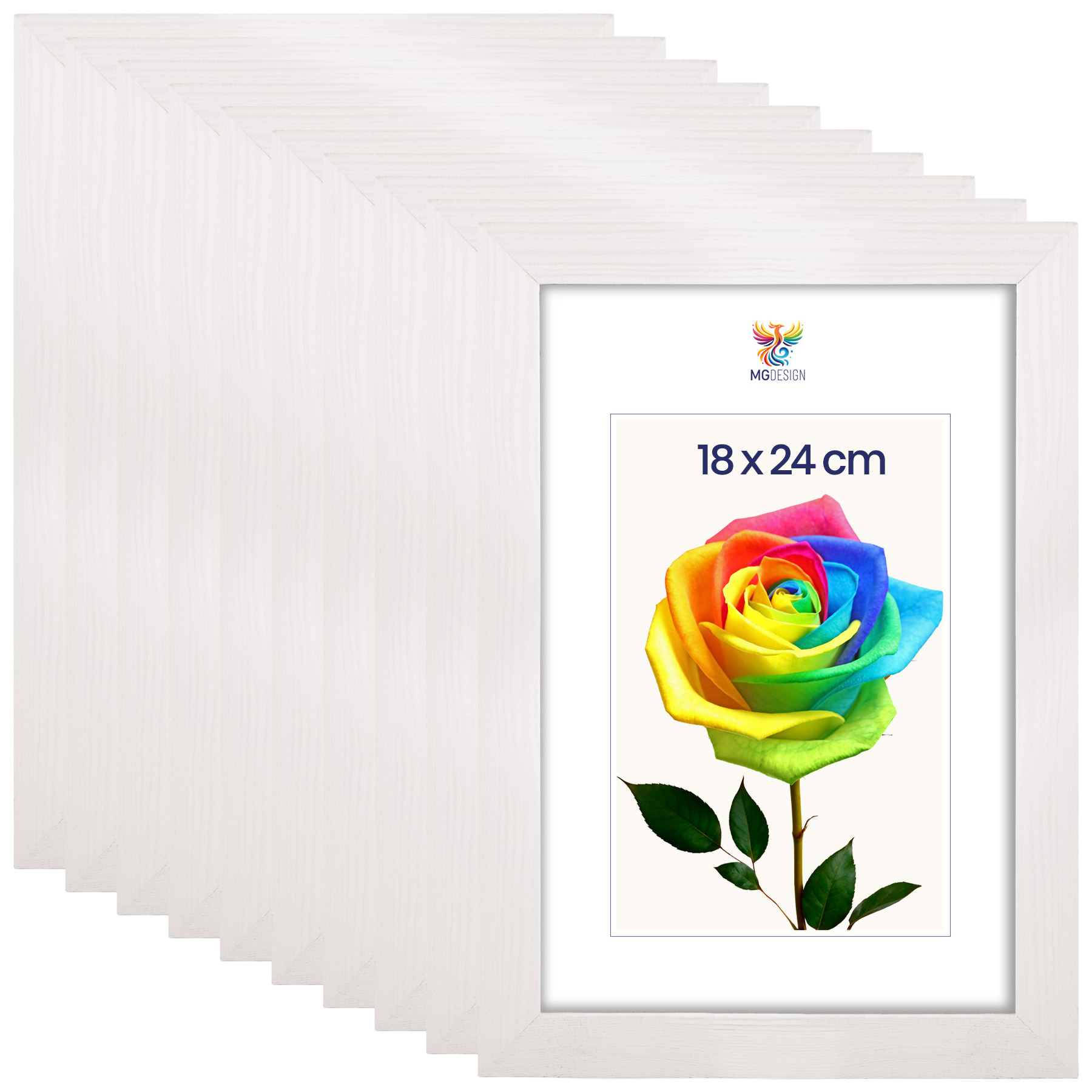 Zestaw 10 szt. ramek na zdjęcia 18 x 24 cm białych, z naturalnego drewna