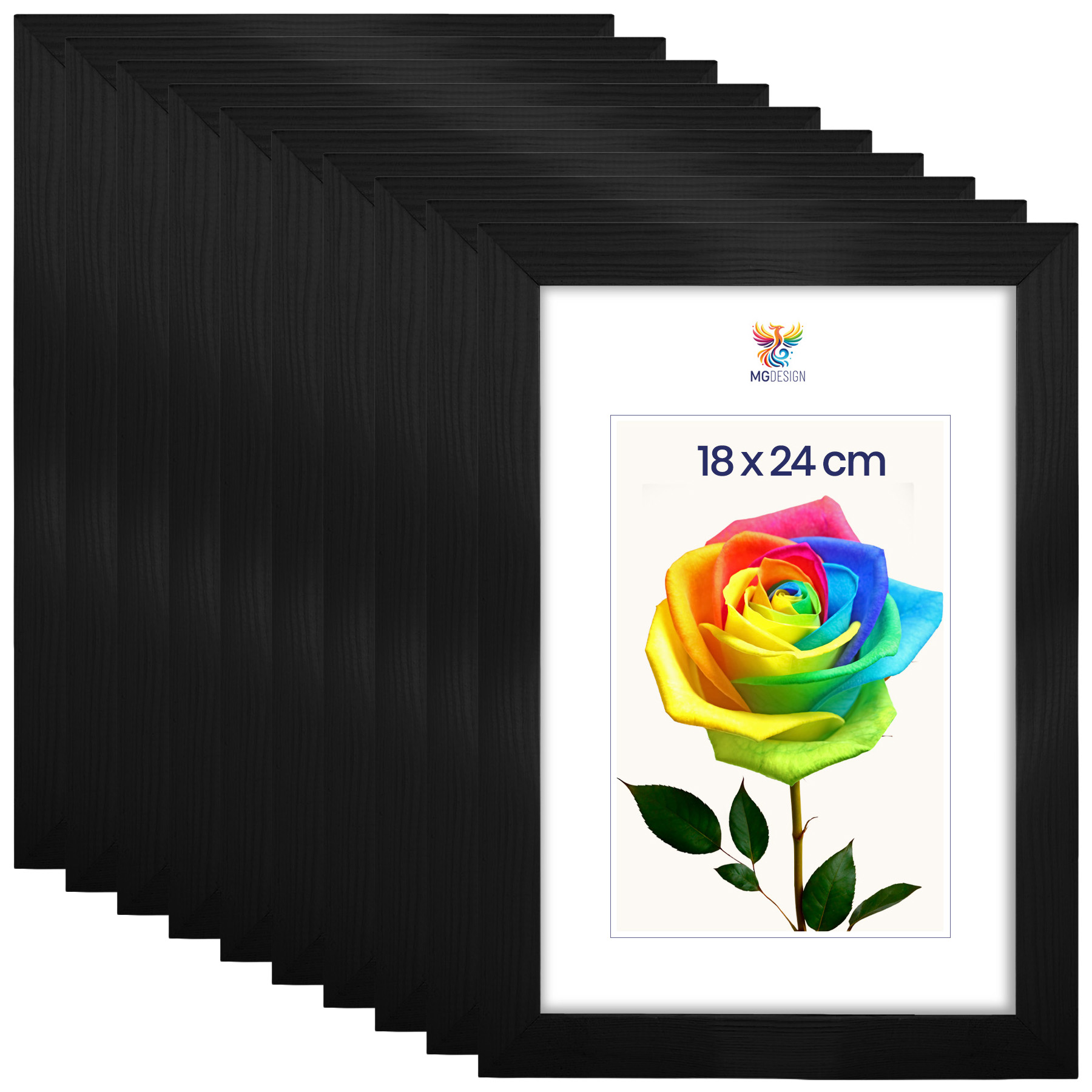 Zestaw 10 szt. ramek na zdjęcia 18 x 24 cm czarnych, z naturalnego drewna