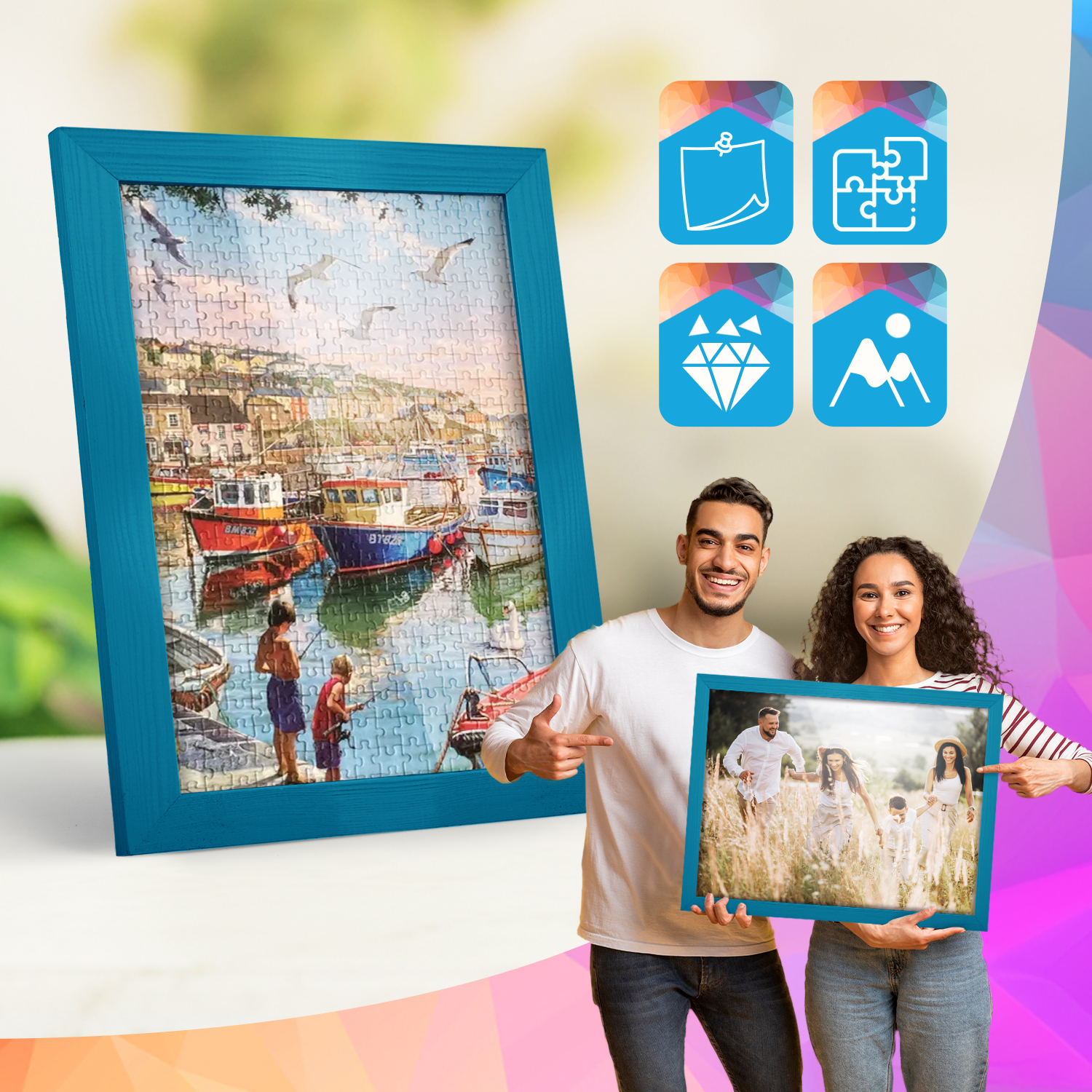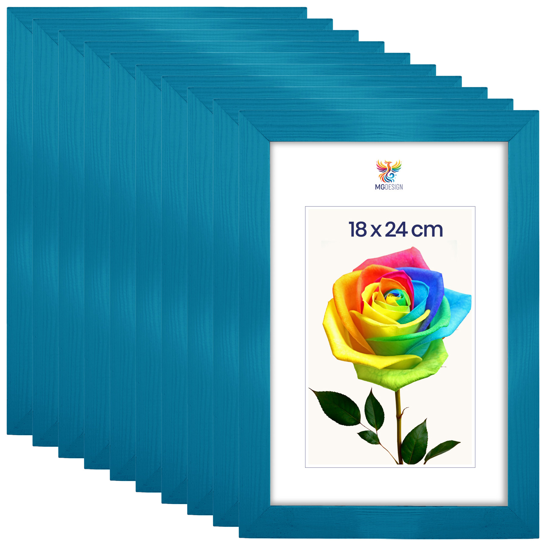 Zestaw 10 szt. ramek na zdjęcia 18 x 24 cm turkusowych, z naturalnego drewna