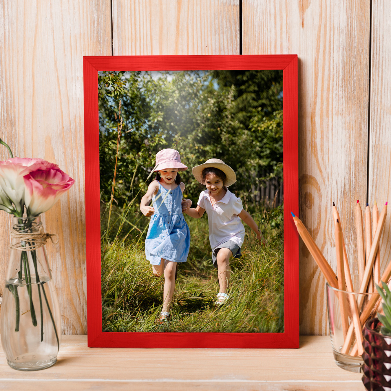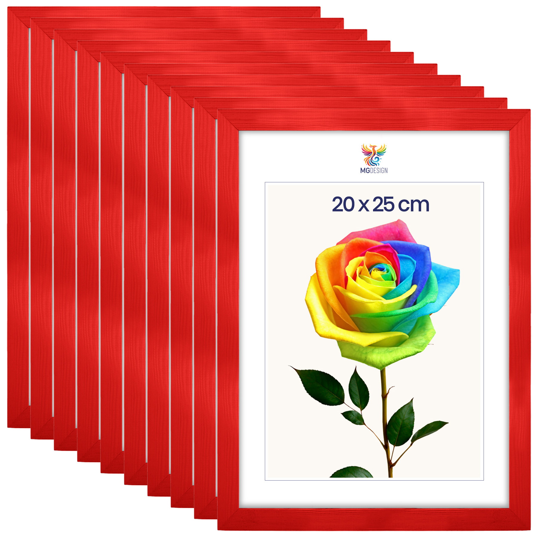 Zestaw 10 szt. ramek na zdjęcia 20 x 25 cm czerwonych, z naturalnego drewna