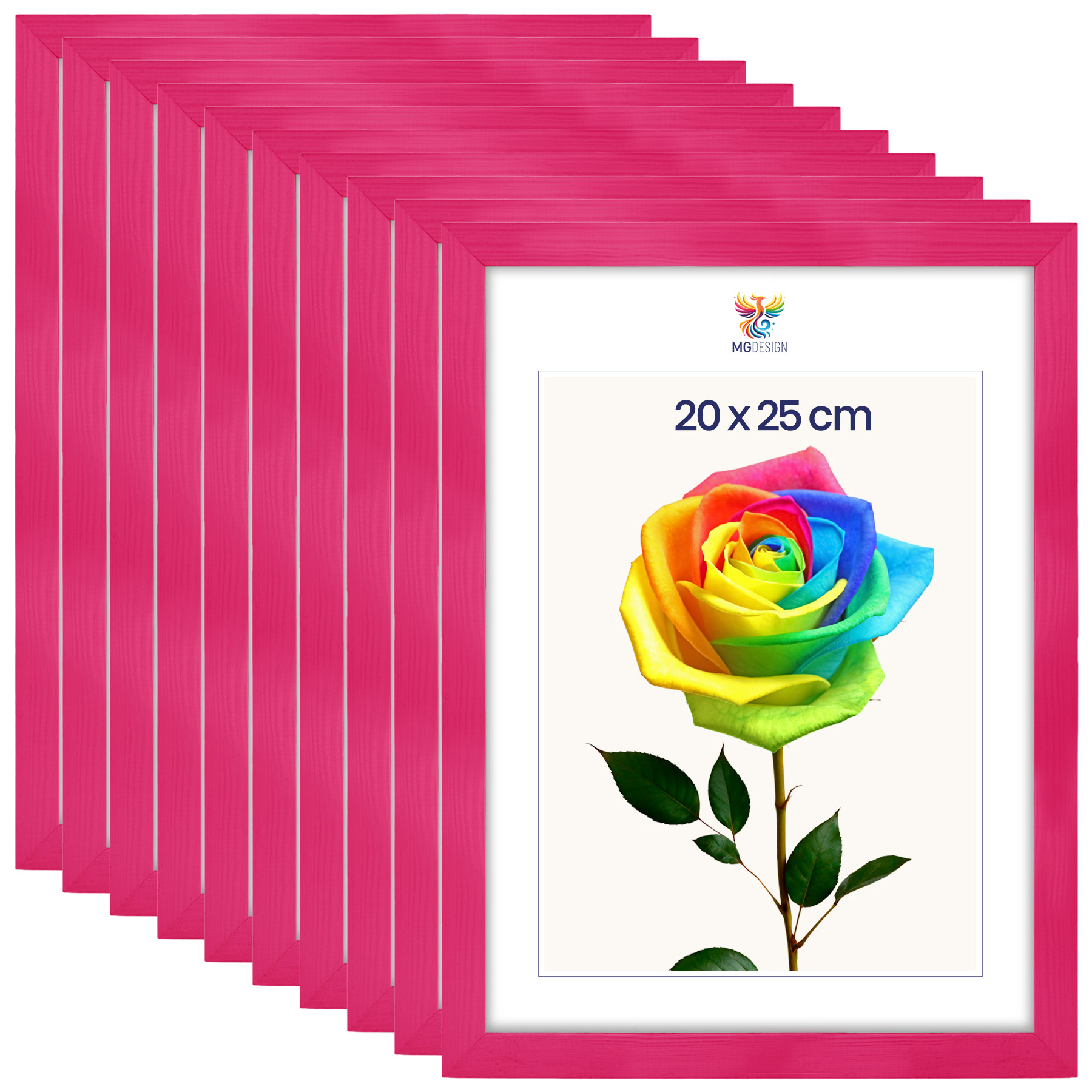 Zestaw 10 szt. ramek na zdjęcia 20 x 25 cm różowych, z naturalnego drewna