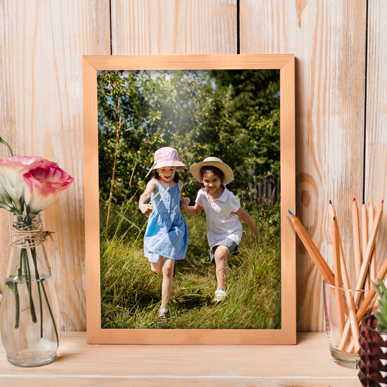 Zestaw drewnianych ramek to estetyczne i uniwersalne rozwiązanie do oprawy zdjęć, plakatów, grafik oraz wydruków dekoracyjnych. Klasyczny, profil ramek nadaje całej kompozycji elegancki wygląd i podkreśla prezentowane motywy, zachowując spójny i uporządkowany charakter aranżacji.