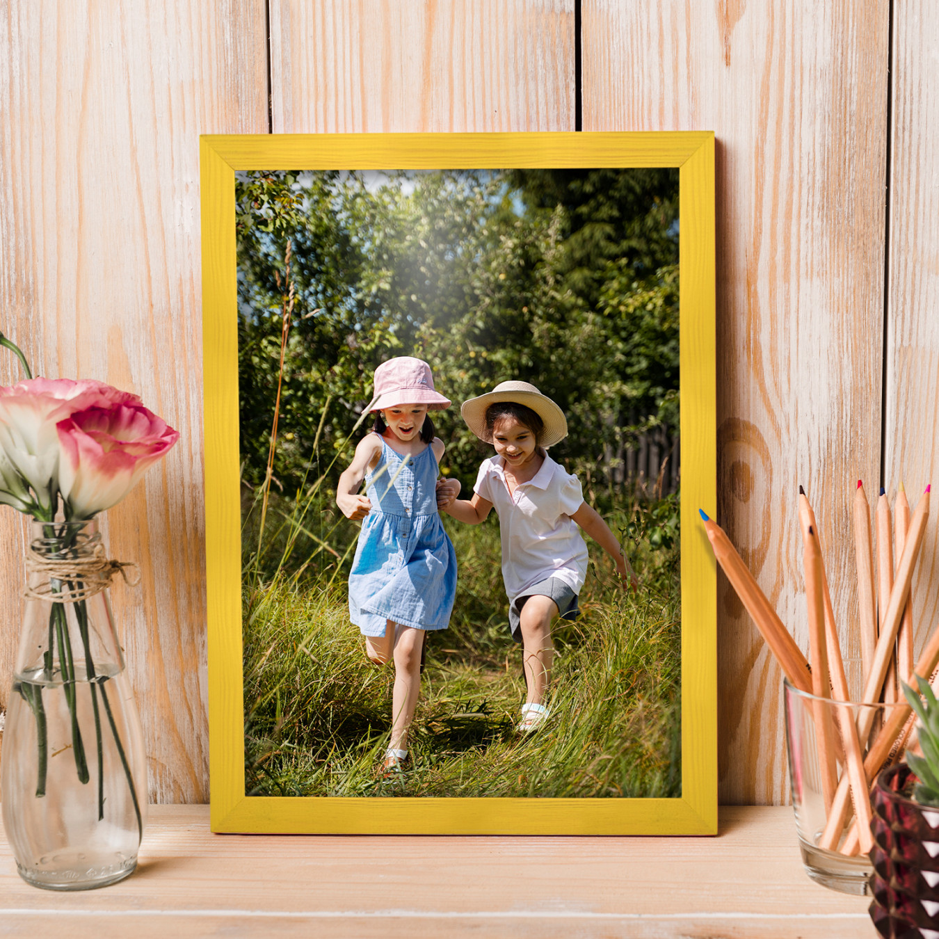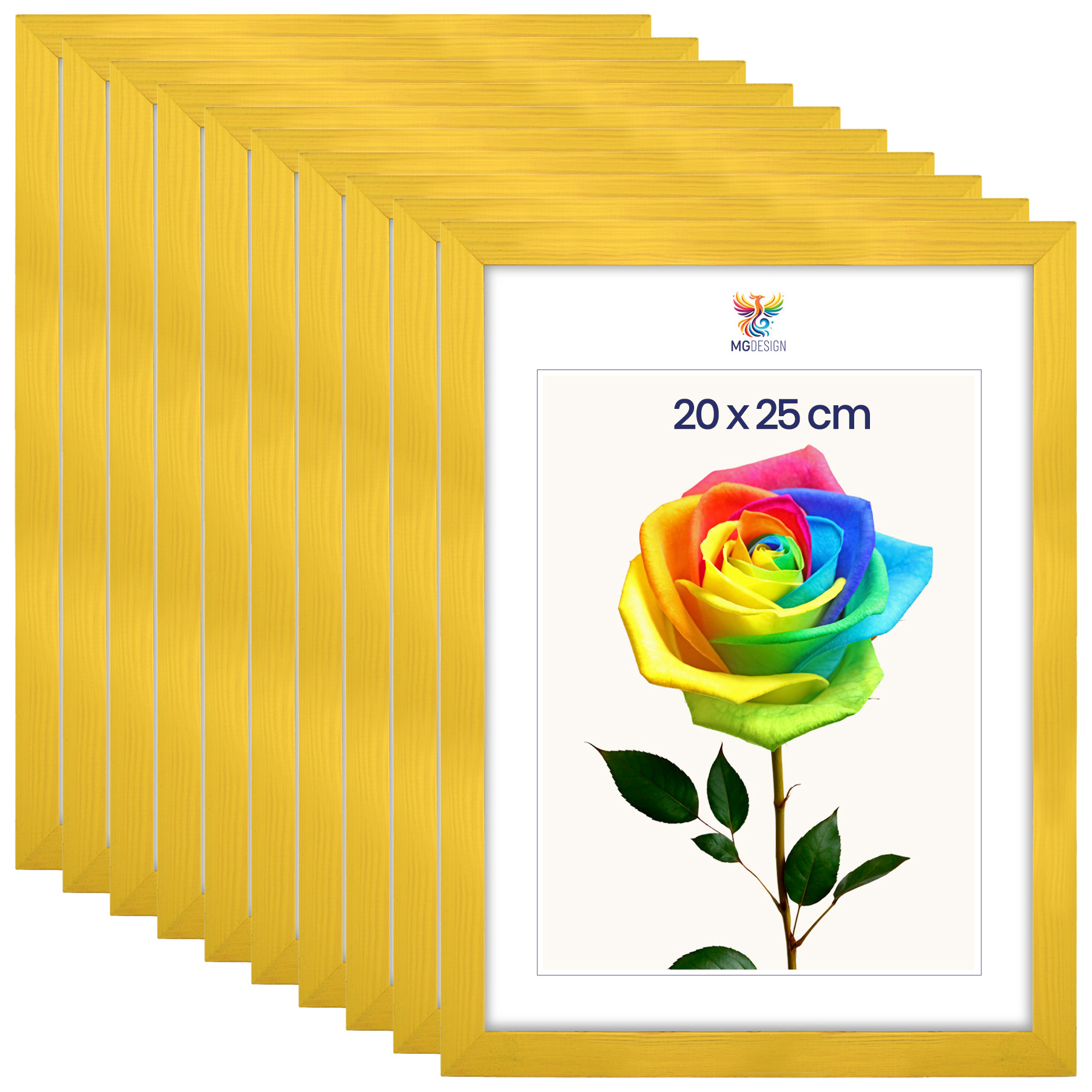 Zestaw 10 szt. ramek na zdjęcia 20 x 25 cm żółtych, z naturalnego drewna