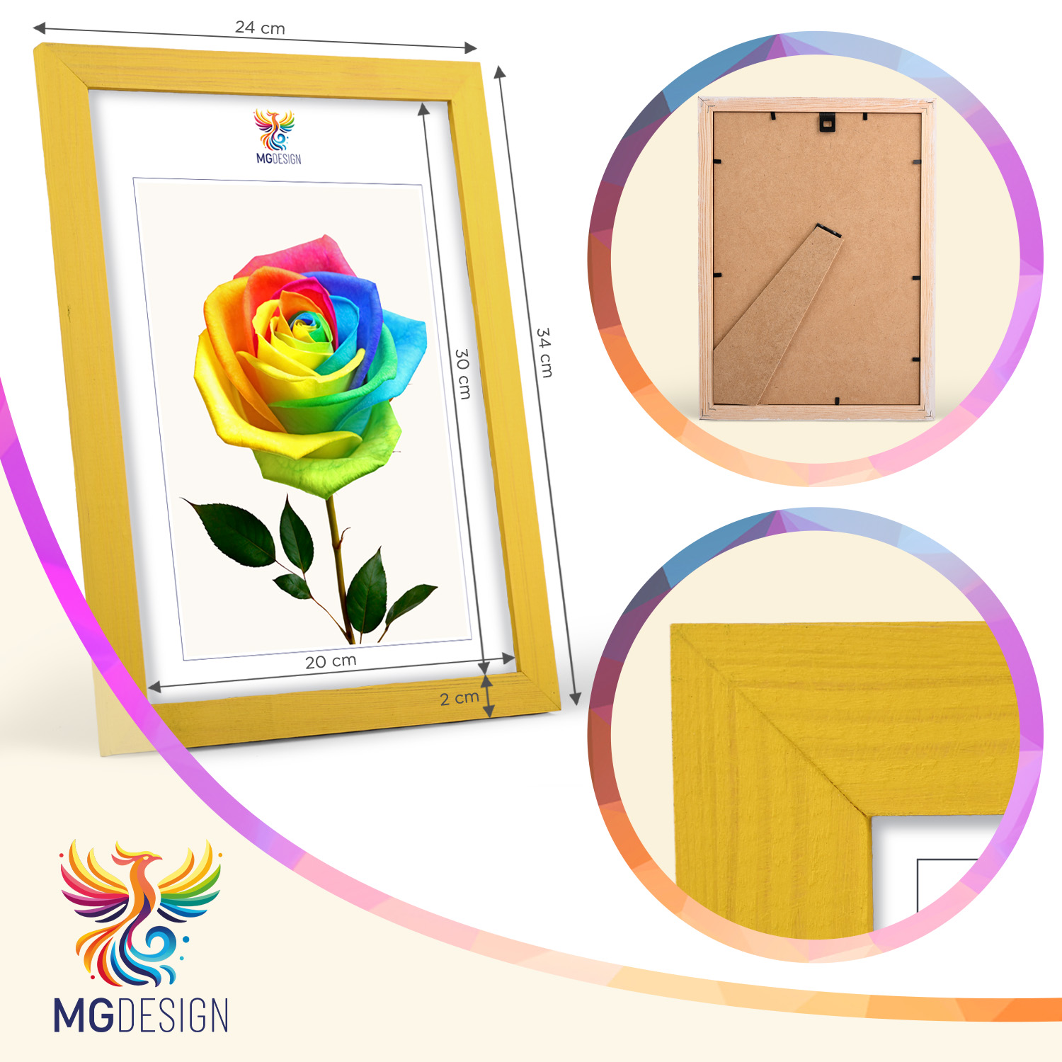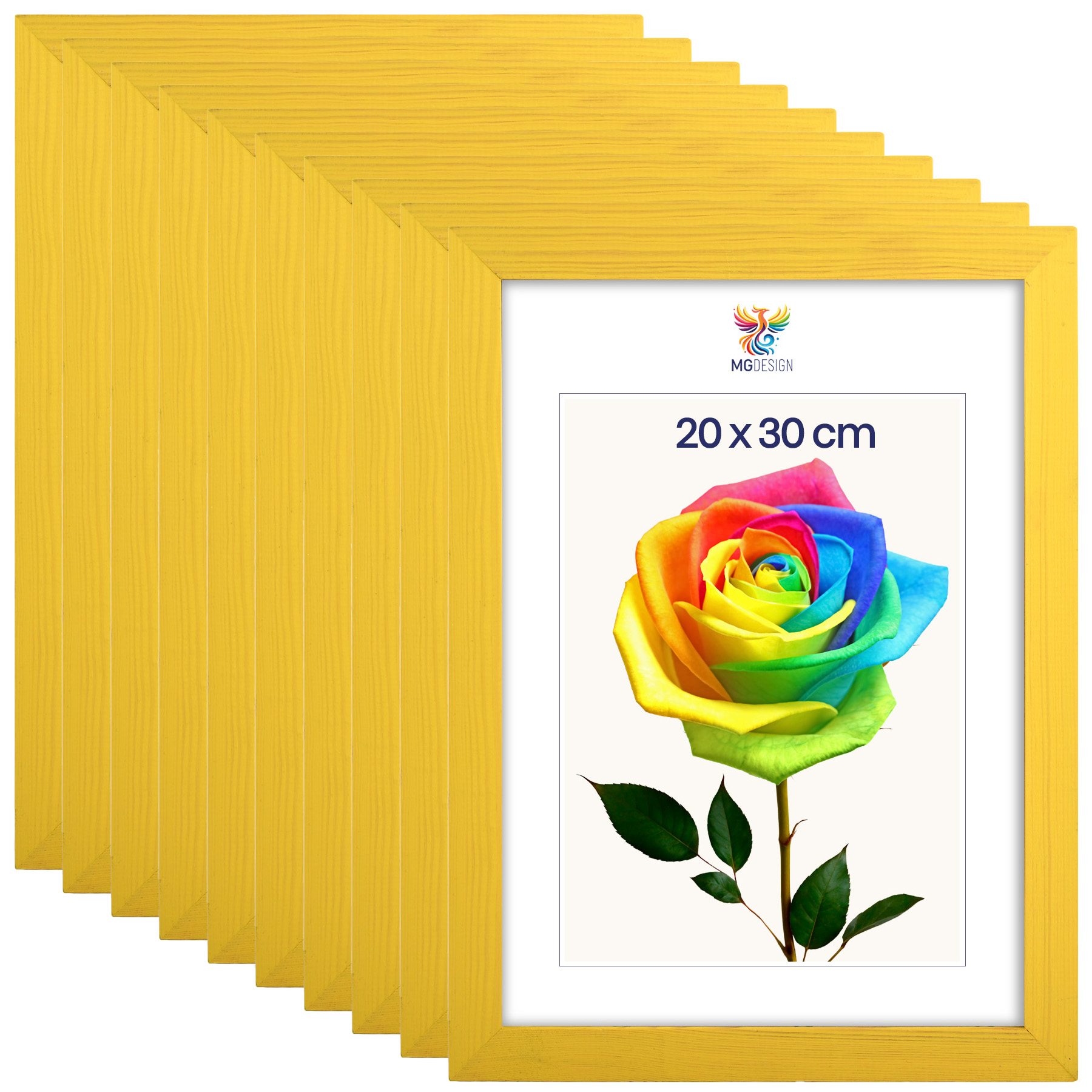Zestaw 10 szt. ramek na zdjęcia 20 x 30 cm żółtych, z naturalnego drewna