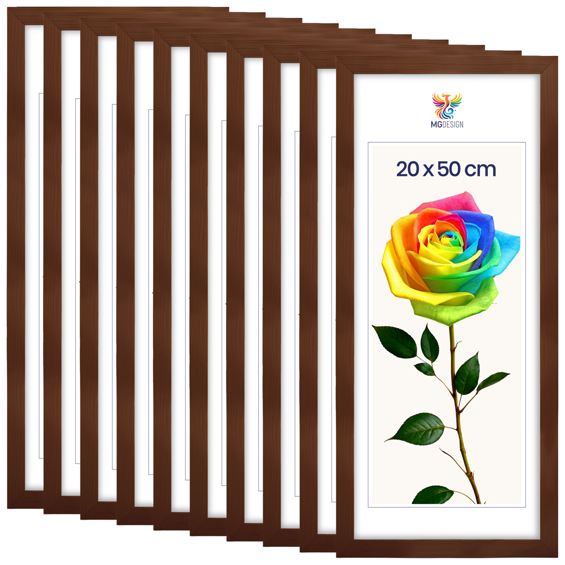 Zestaw 10 szt. ramek na zdjęcia 20 x 50 cm brązowych, z naturalnego drewna