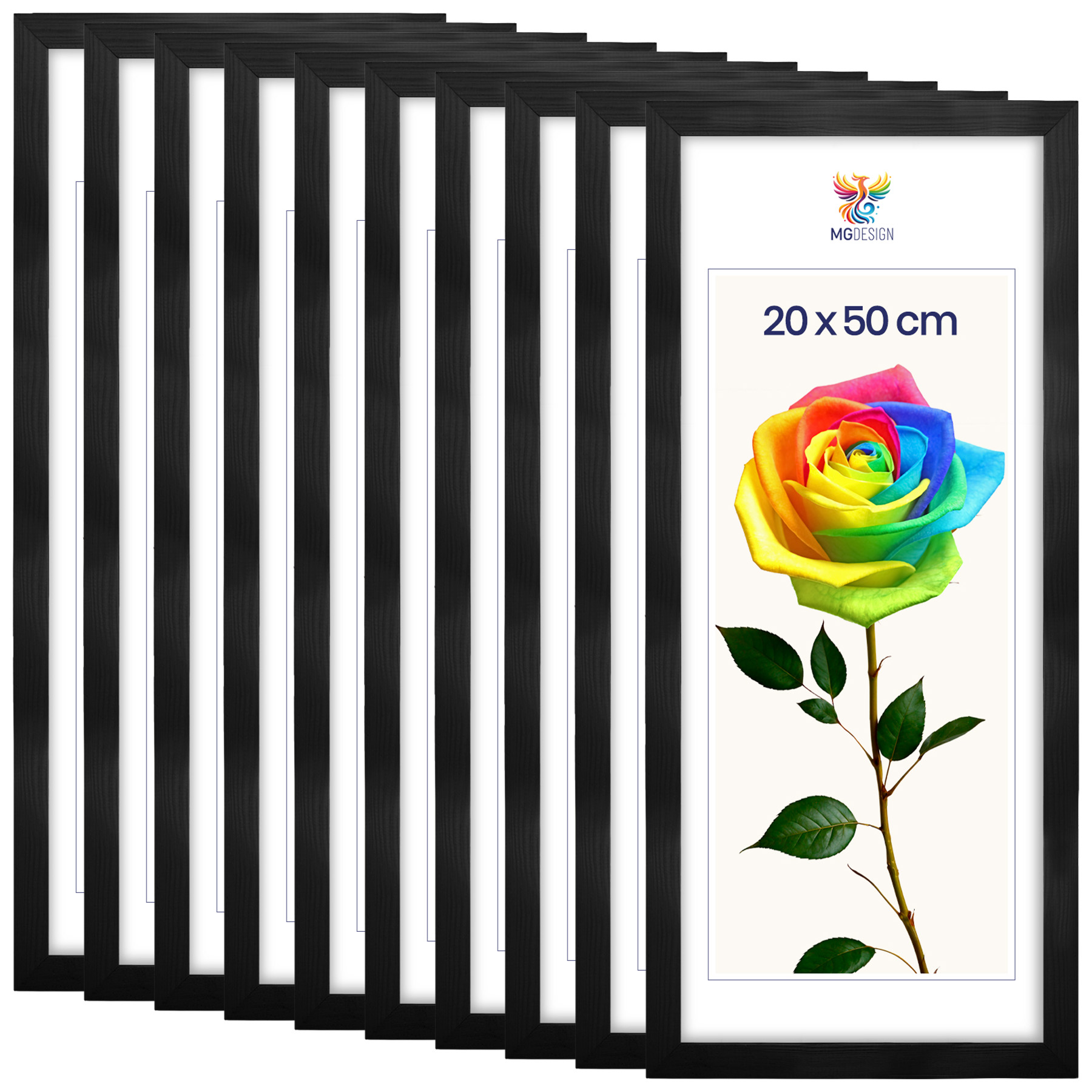 Zestaw 10 szt. ramek na zdjęcia 20 x 50 cm czarnych, z naturalnego drewna