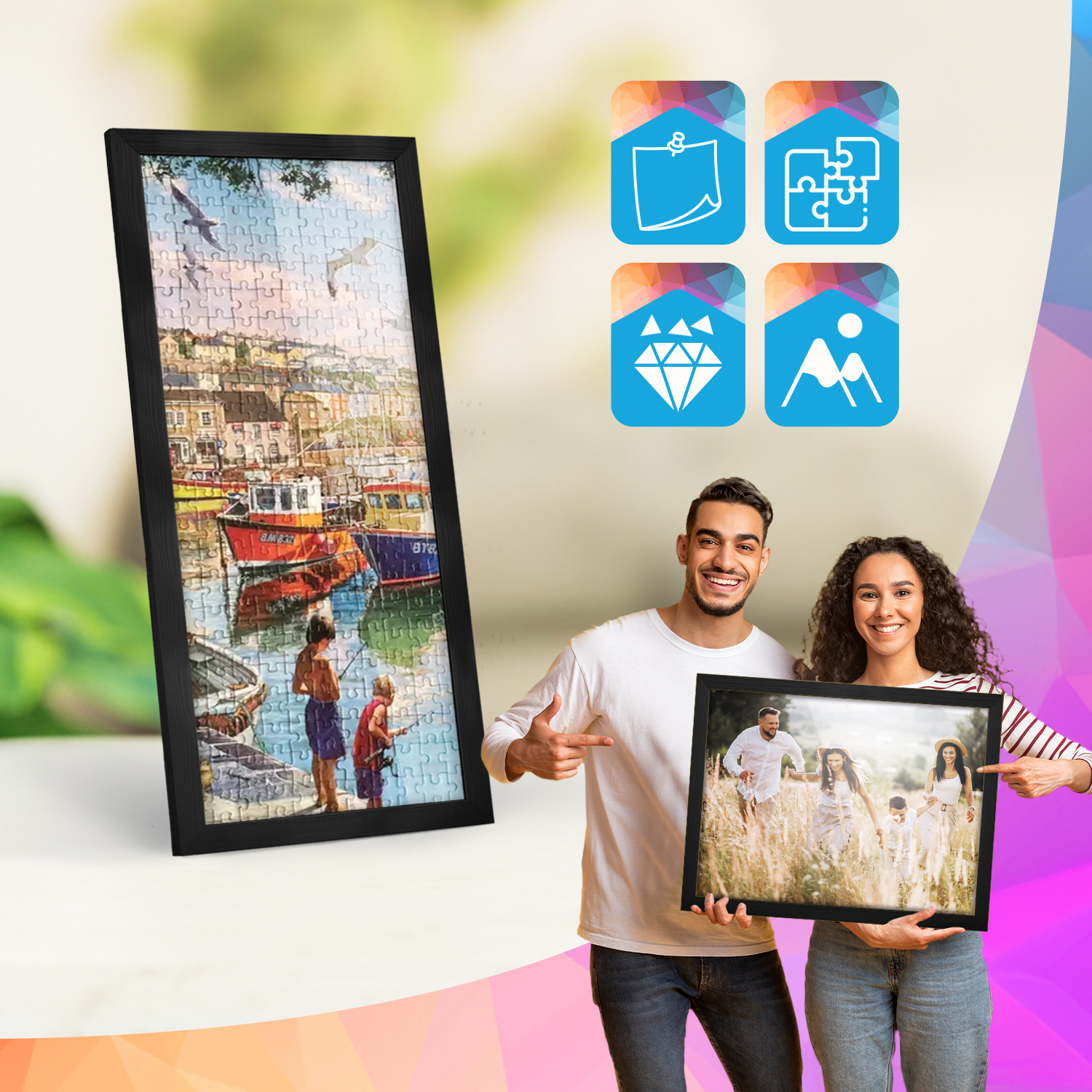 Ramki mogą być eksponowane zarówno na meblach, jak i na ścianie. Zintegrowane zawieszki pozwalają na ustawienie lub zawieszenie ramek w pionie lub w poziomie, dzięki czemu łatwo dopasować zestaw do aranżacji wnętrza.
