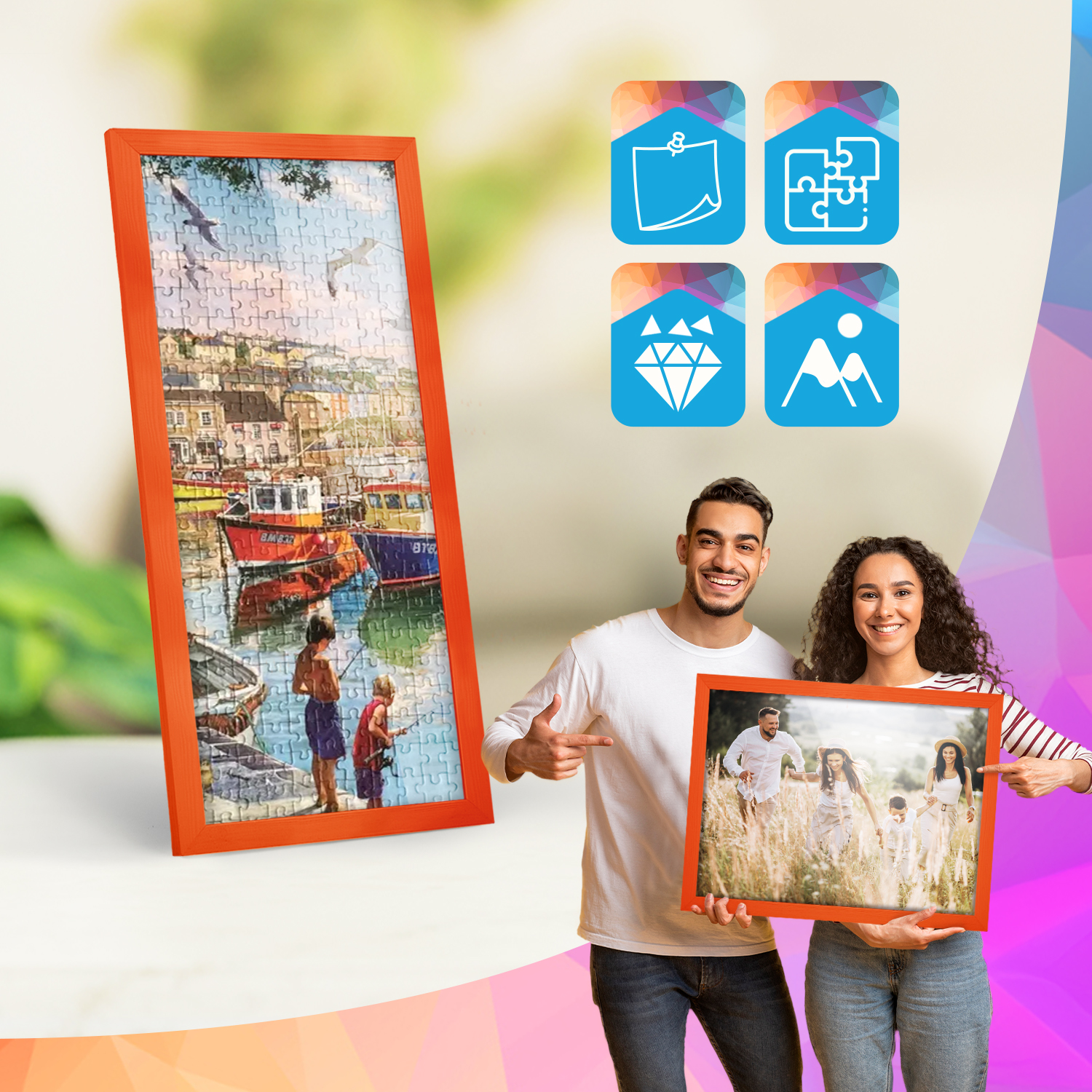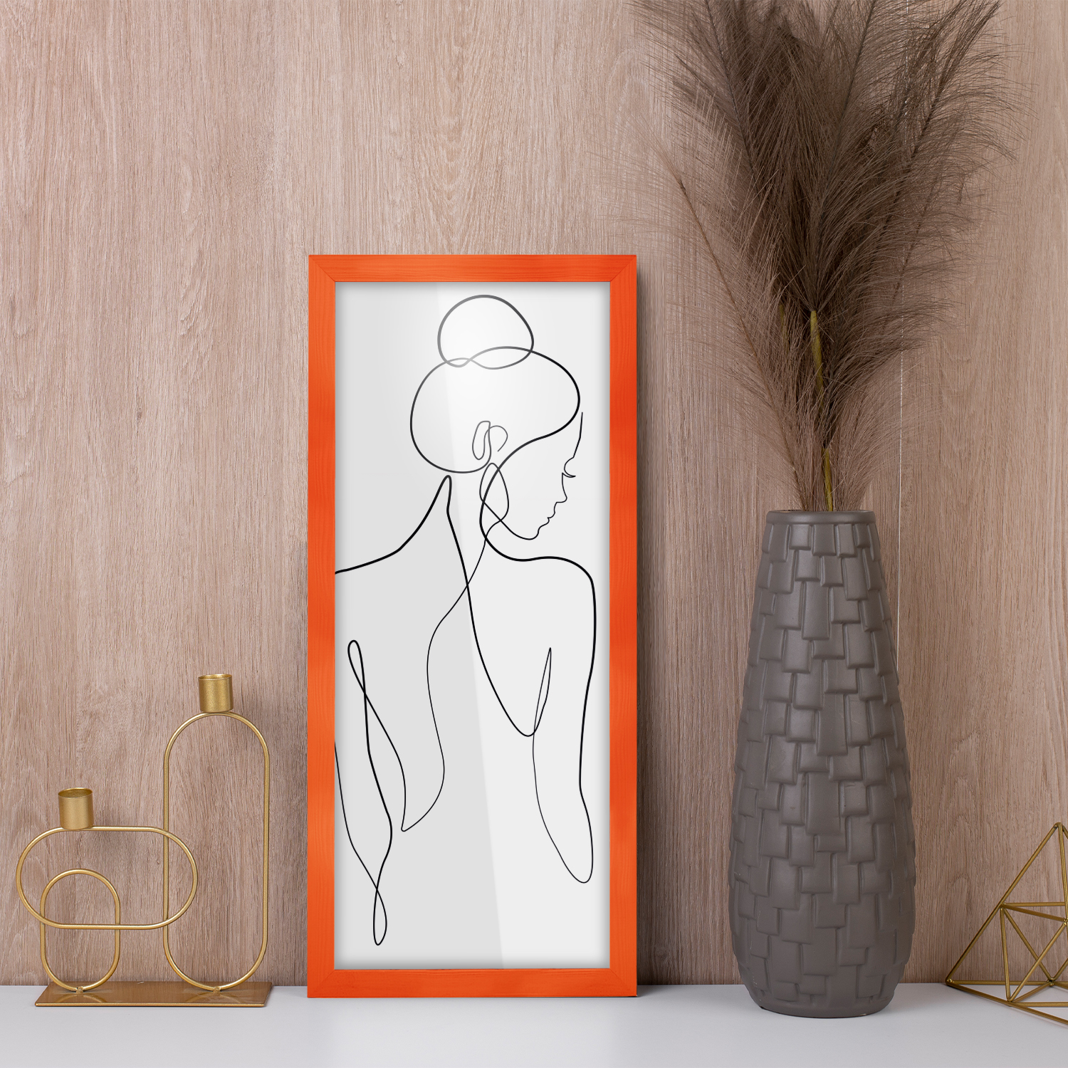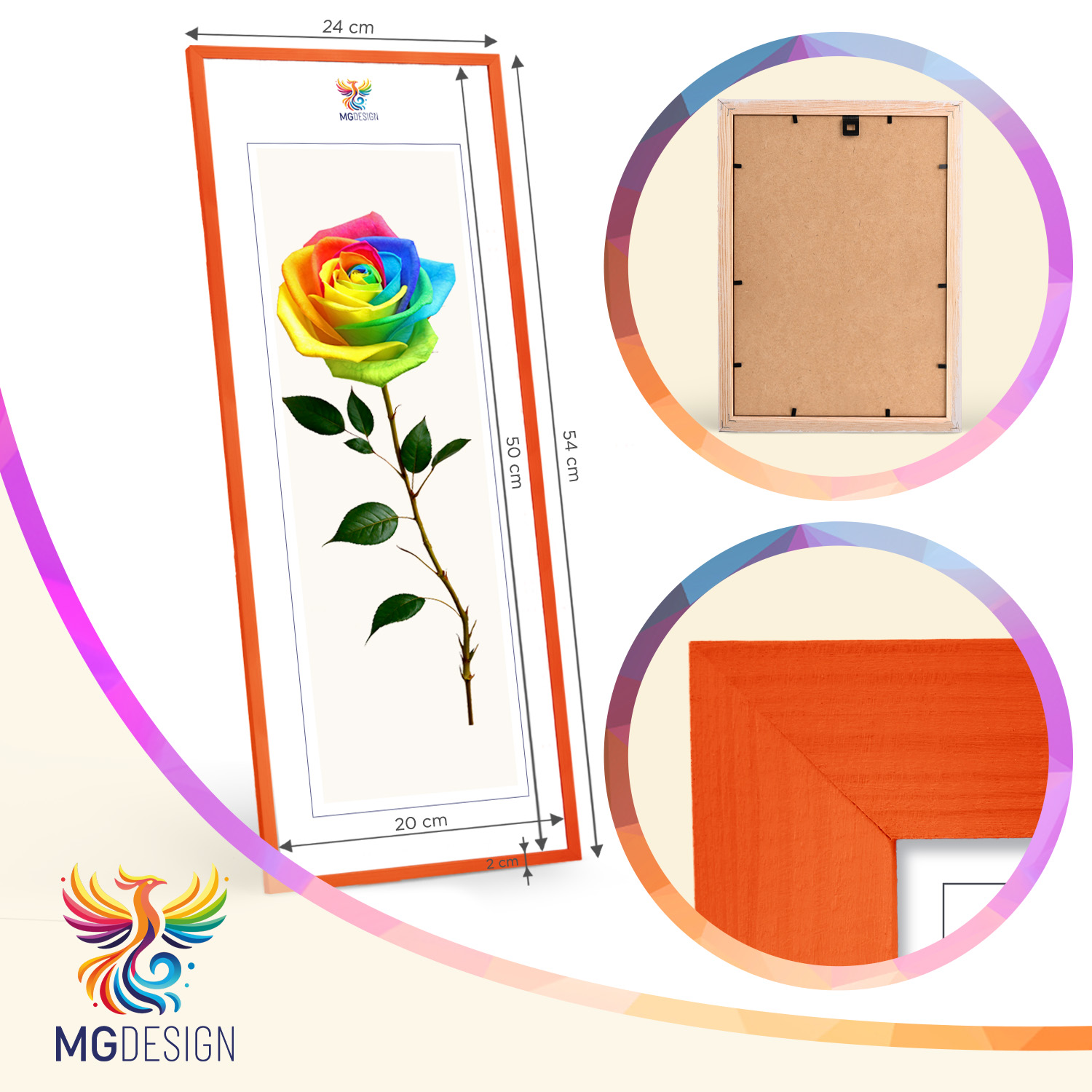 Zestaw 10 szt. ramek na zdjęcia 20 x 50 cm pomarańczowych, z naturalnego drewna