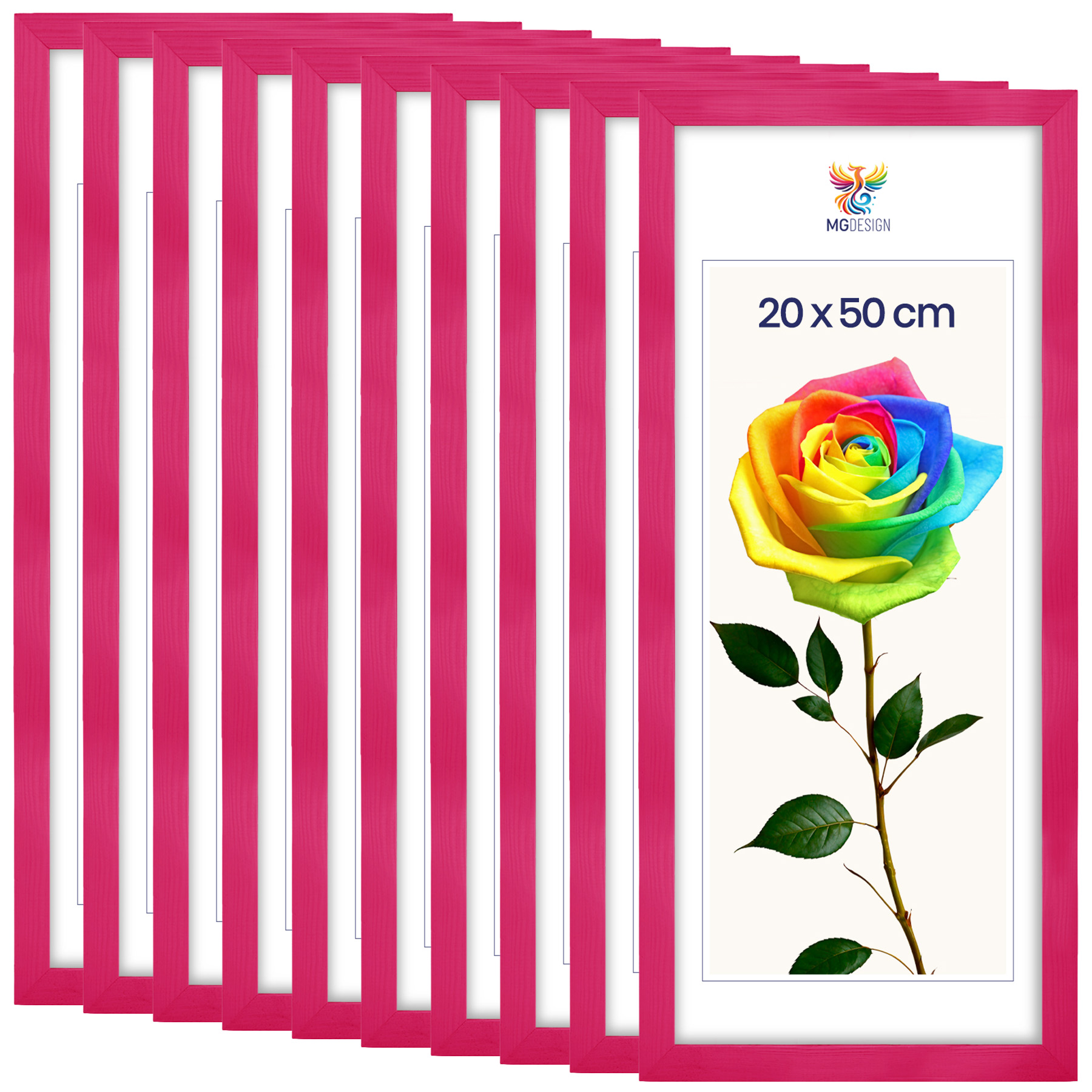 Zestaw 10 szt. ramek na zdjęcia 20 x 50 cm różowych, z naturalnego drewna