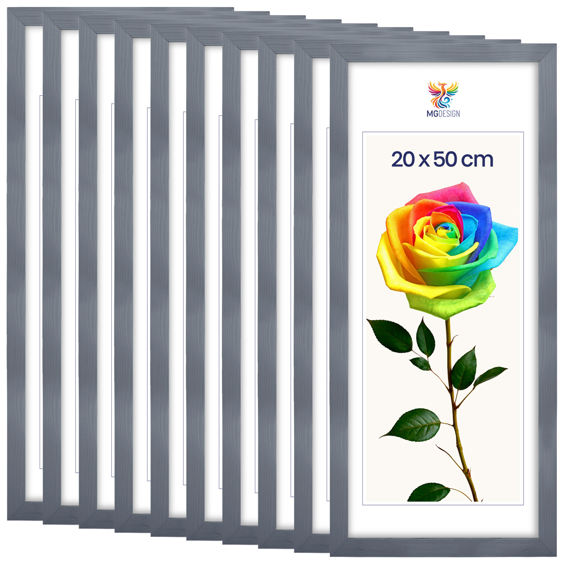 Zestaw 10 szt. ramek na zdjęcia 20 x 50 cm szarych, z naturalnego drewna