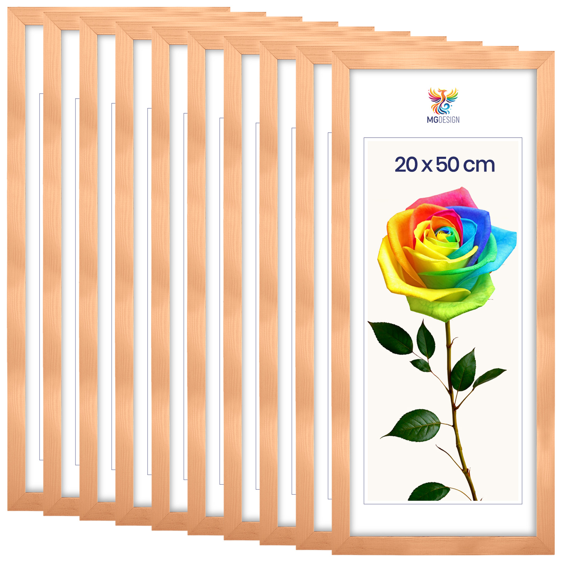 Zestaw 10 szt. ramek na zdjęcia 20 x 50 cm z naturalnego drewna