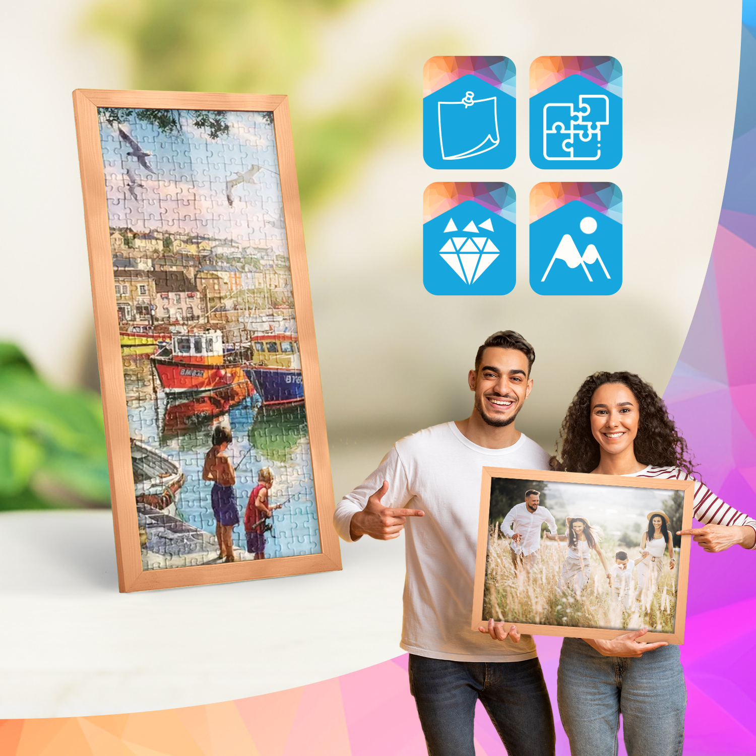 Zestaw drewnianych ramek to estetyczne i uniwersalne rozwiązanie do oprawy zdjęć, plakatów, grafik oraz wydruków dekoracyjnych. Klasyczny, profil ramek nadaje całej kompozycji elegancki wygląd i podkreśla prezentowane motywy, zachowując spójny i uporządkowany charakter aranżacji.