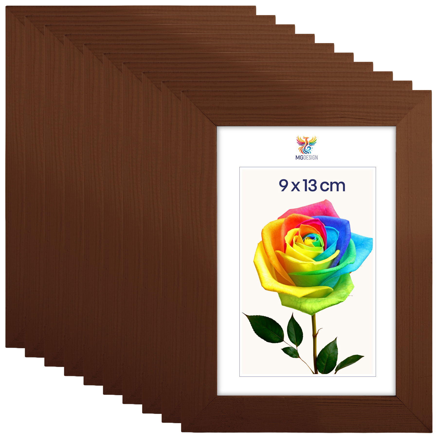 Zestaw 10 szt. ramek na zdjęcia 9 x 13 cm brązowych, z naturalnego drewna