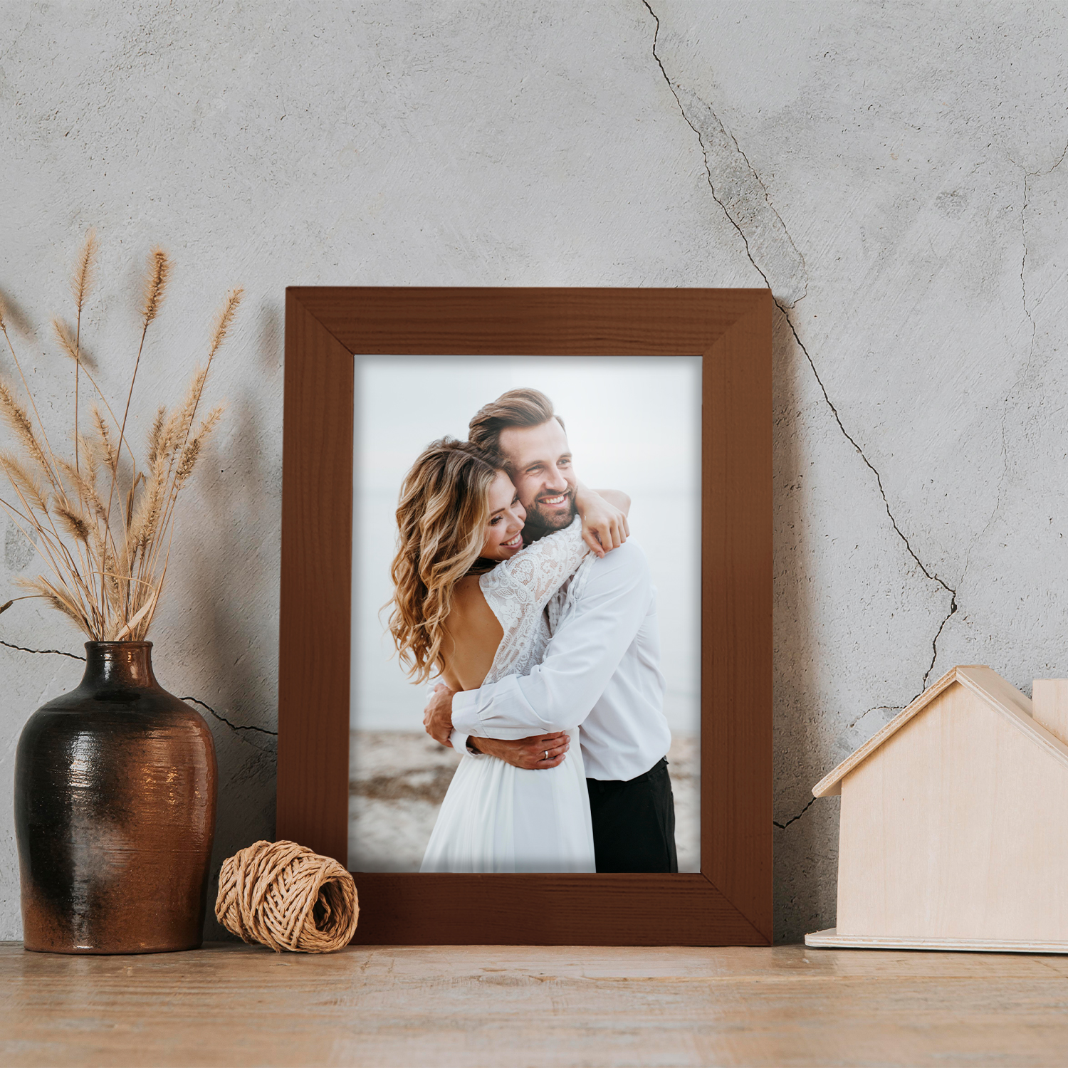 Zestaw drewnianych ramek to estetyczne i uniwersalne rozwiązanie do oprawy zdjęć, plakatów, grafik oraz wydruków dekoracyjnych. Klasyczny, profil ramek nadaje całej kompozycji elegancki wygląd i podkreśla prezentowane motywy, zachowując spójny i uporządkowany charakter aranżacji.