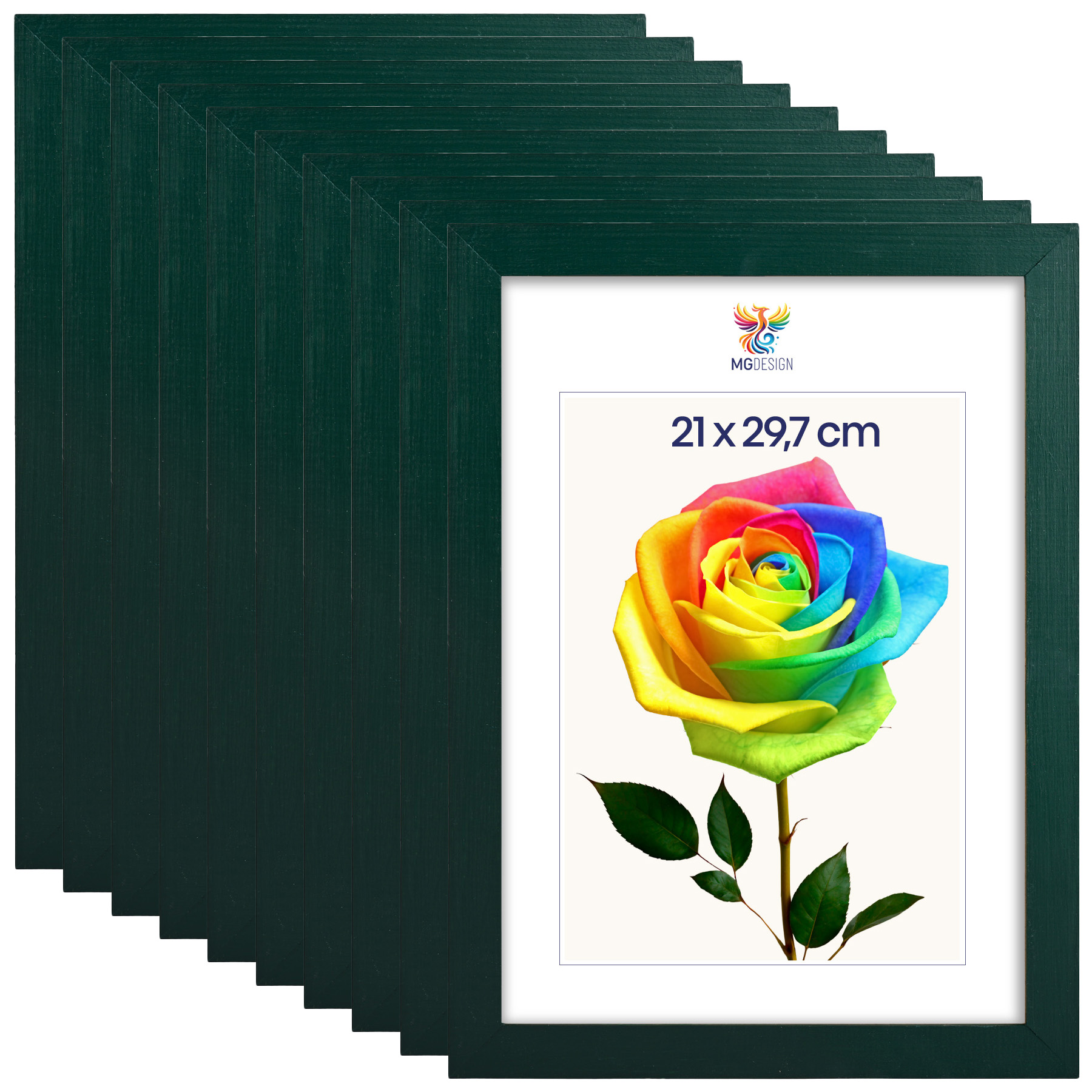 Zestaw 10 szt. ramek na zdjęcia A4 21 x 29,7 cm zielonych, z naturalnego drewna