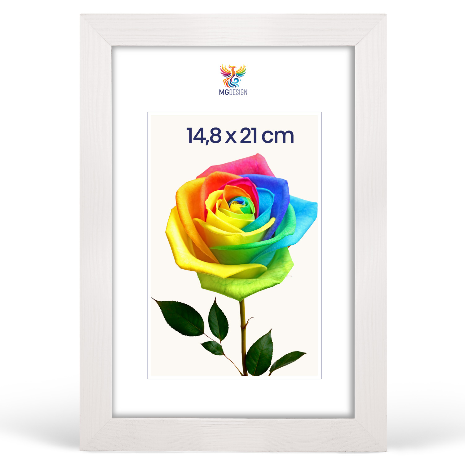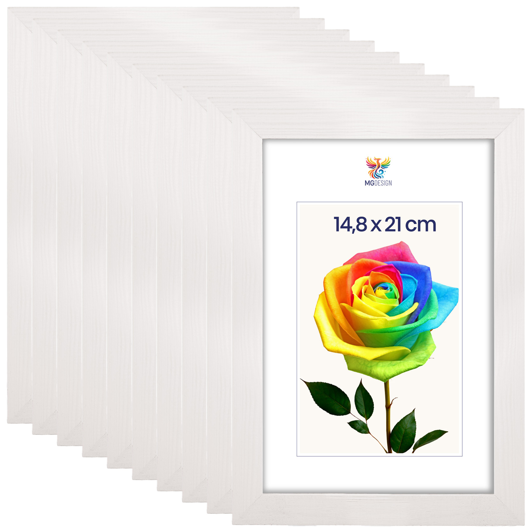 Zestaw 10 szt. ramek na zdjęcia A5 14,8 x 21 cm białych, z naturalnego drewna