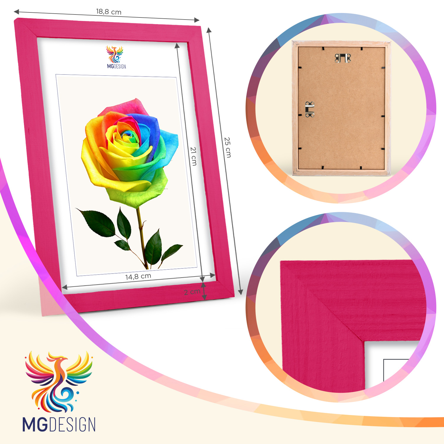 Zestaw 10 szt. ramek na zdjęcia A5 14,8 x 21 cm różowych, z naturalnego drewna
