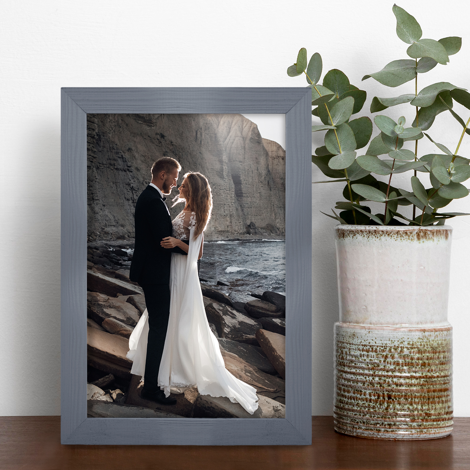 Zestaw 10 szt. ramek na zdjęcia A5 14,8 x 21 cm szarych, z naturalnego drewna