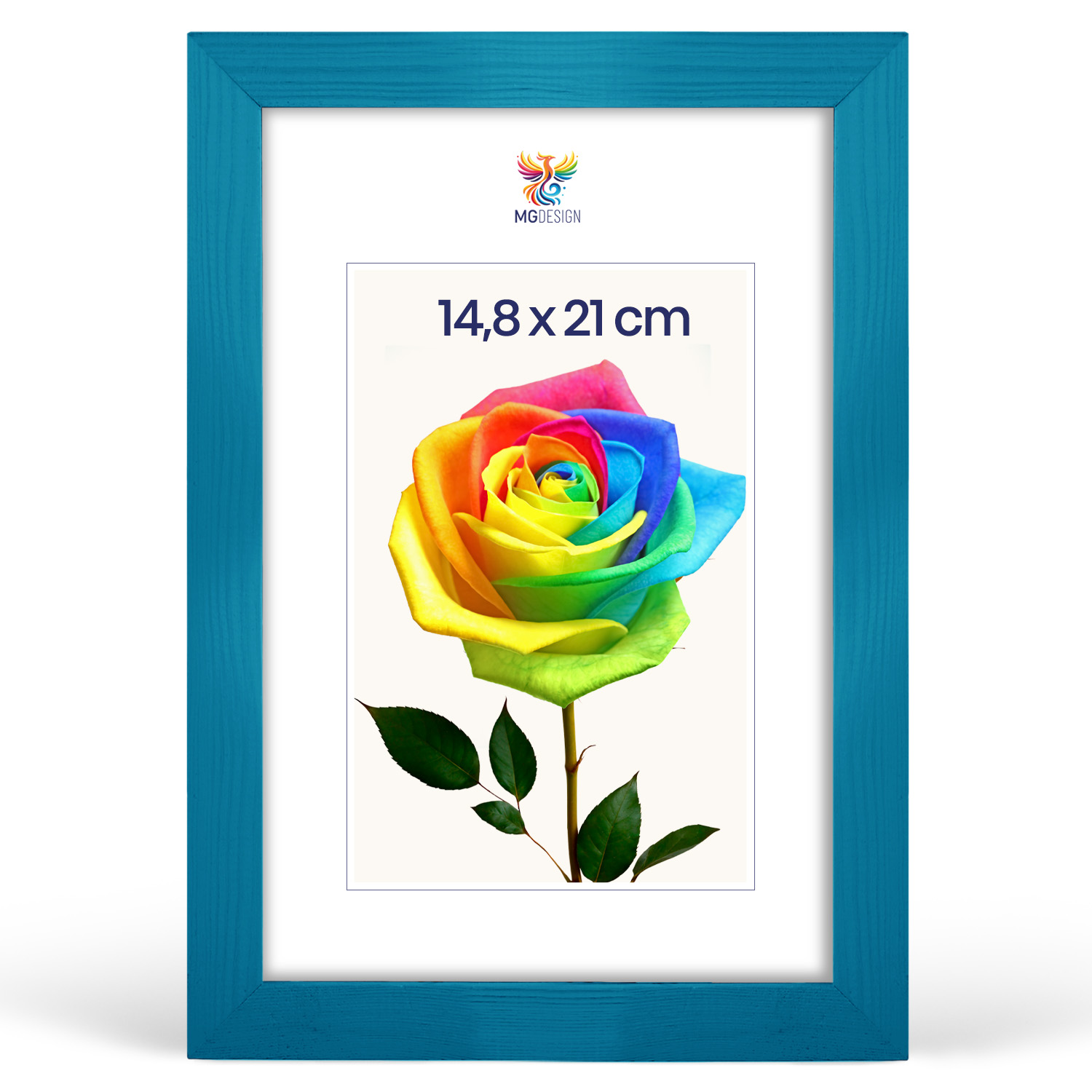 Zestaw 10 szt. ramek na zdjęcia A5 14,8 x 21 cm turkusowych, z naturalnego drewna