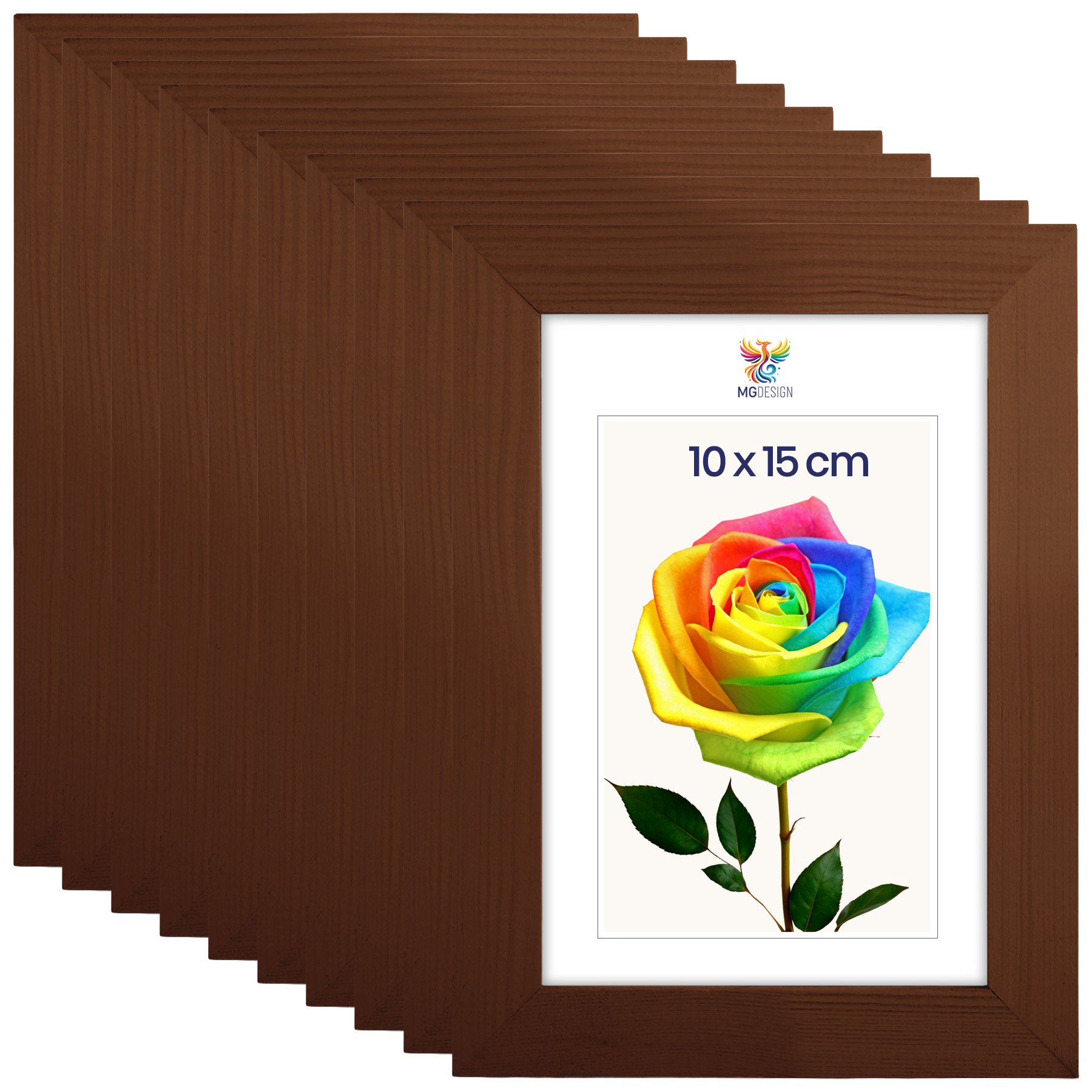 Zestaw 10 szt. ramek na zdjęcia A6 10 x 15 cm brązowych, z naturalnego drewna