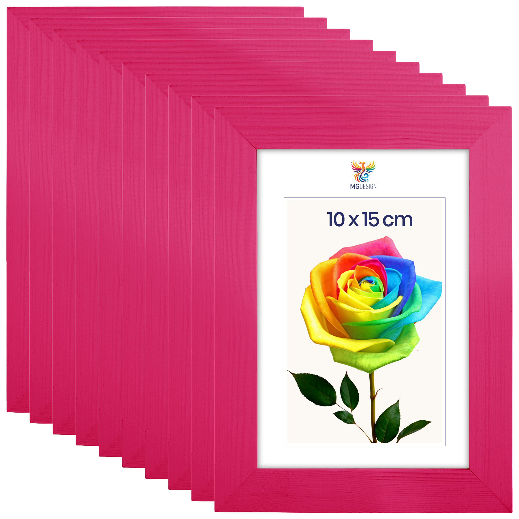 Zestaw 10 szt. ramek na zdjęcia A6 10 x 15 cm różowych, z naturalnego drewna