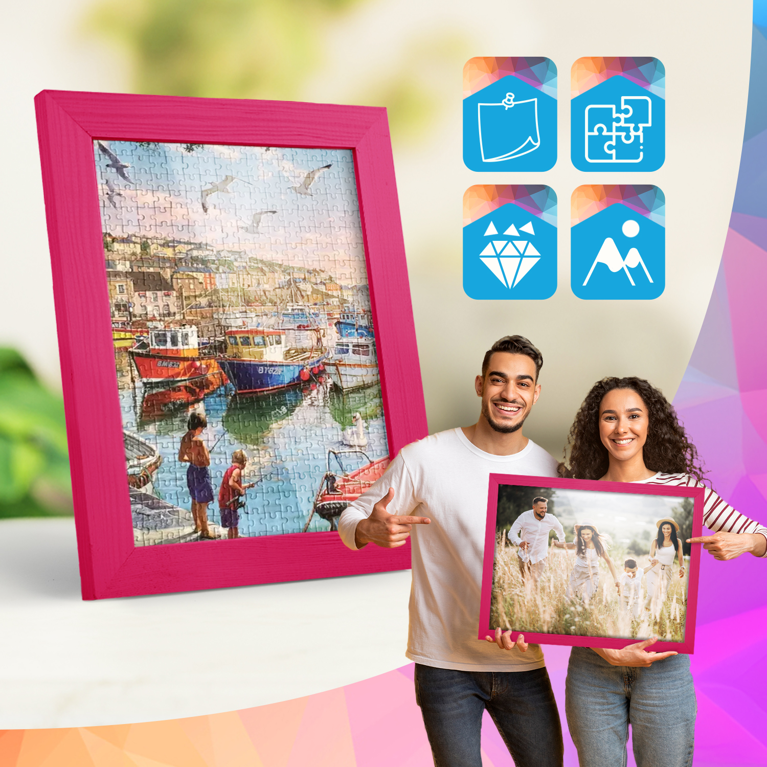 Zestaw drewnianych ramek to estetyczne i uniwersalne rozwiązanie do oprawy zdjęć, plakatów, grafik oraz wydruków dekoracyjnych. Klasyczny, profil ramek nadaje całej kompozycji elegancki wygląd i podkreśla prezentowane motywy, zachowując spójny i uporządkowany charakter aranżacji.