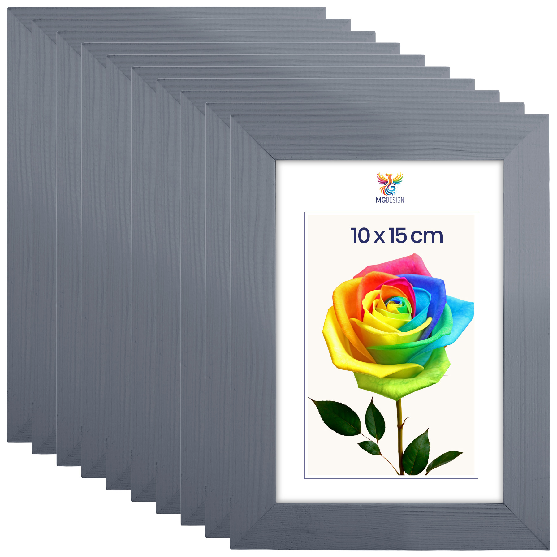 Zestaw 10 szt. ramek na zdjęcia A6 10 x 15 cm szarych, z naturalnego drewna
