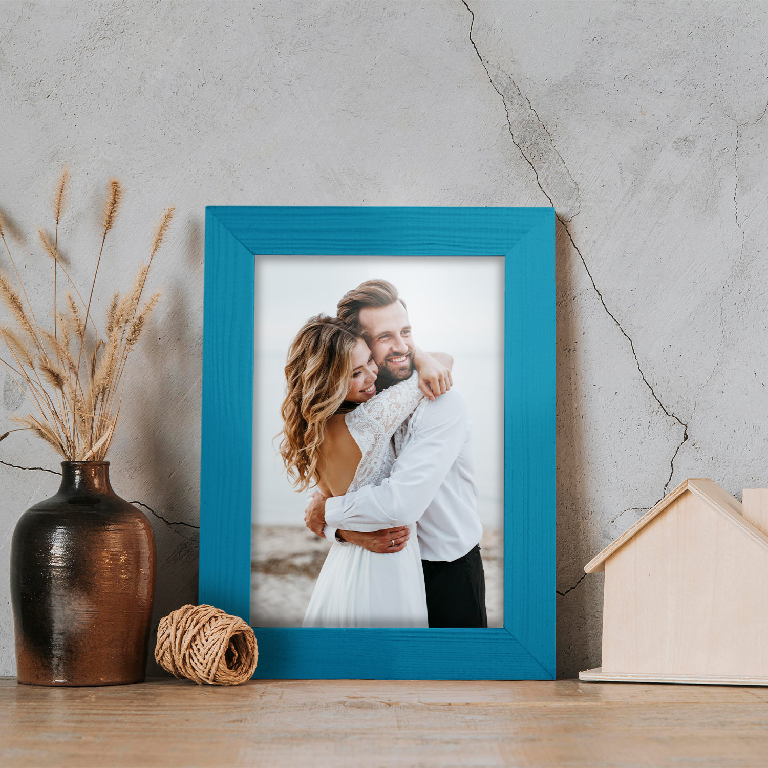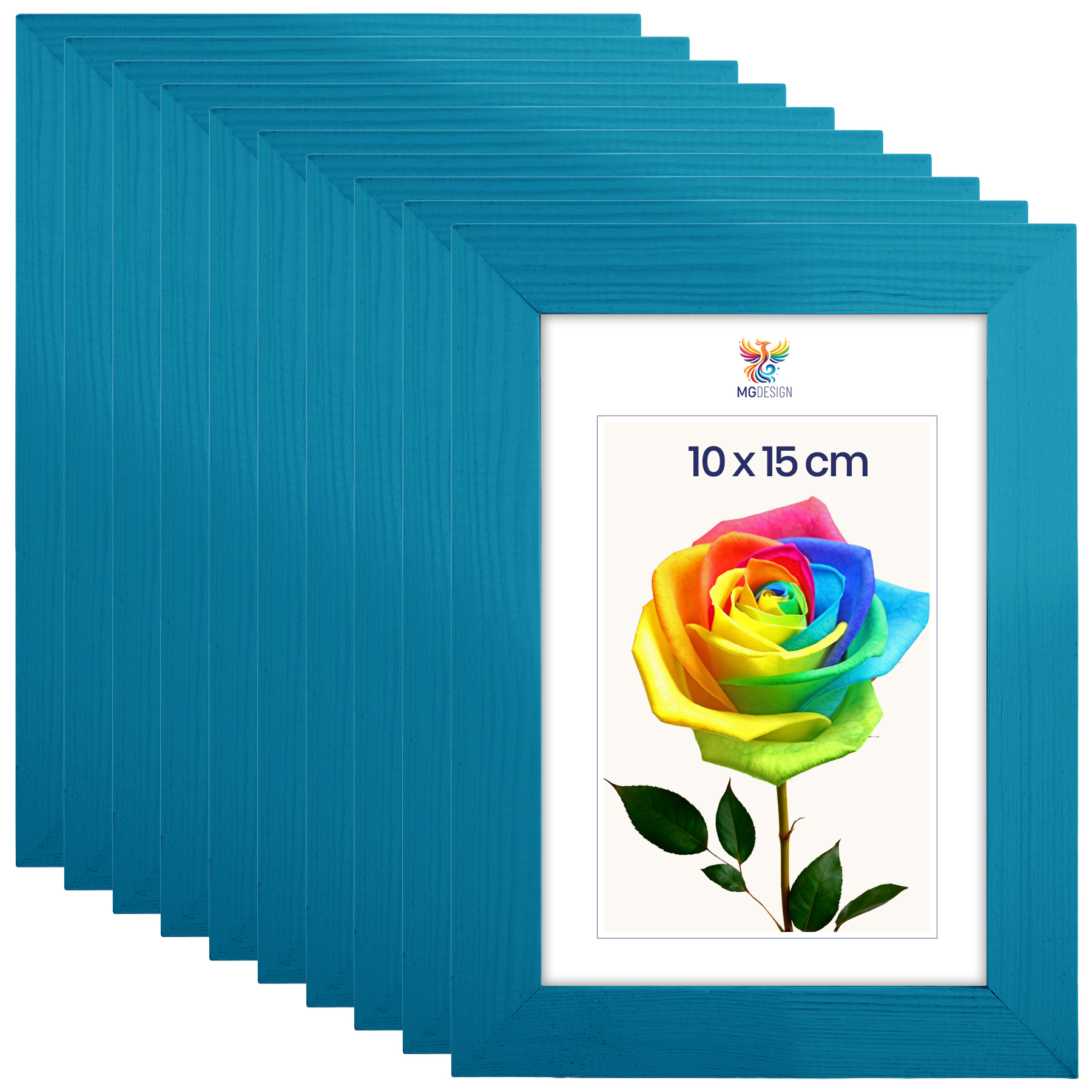 Zestaw 10 szt. ramek na zdjęcia A6 10 x 15 cm turkusowych, z naturalnego drewna