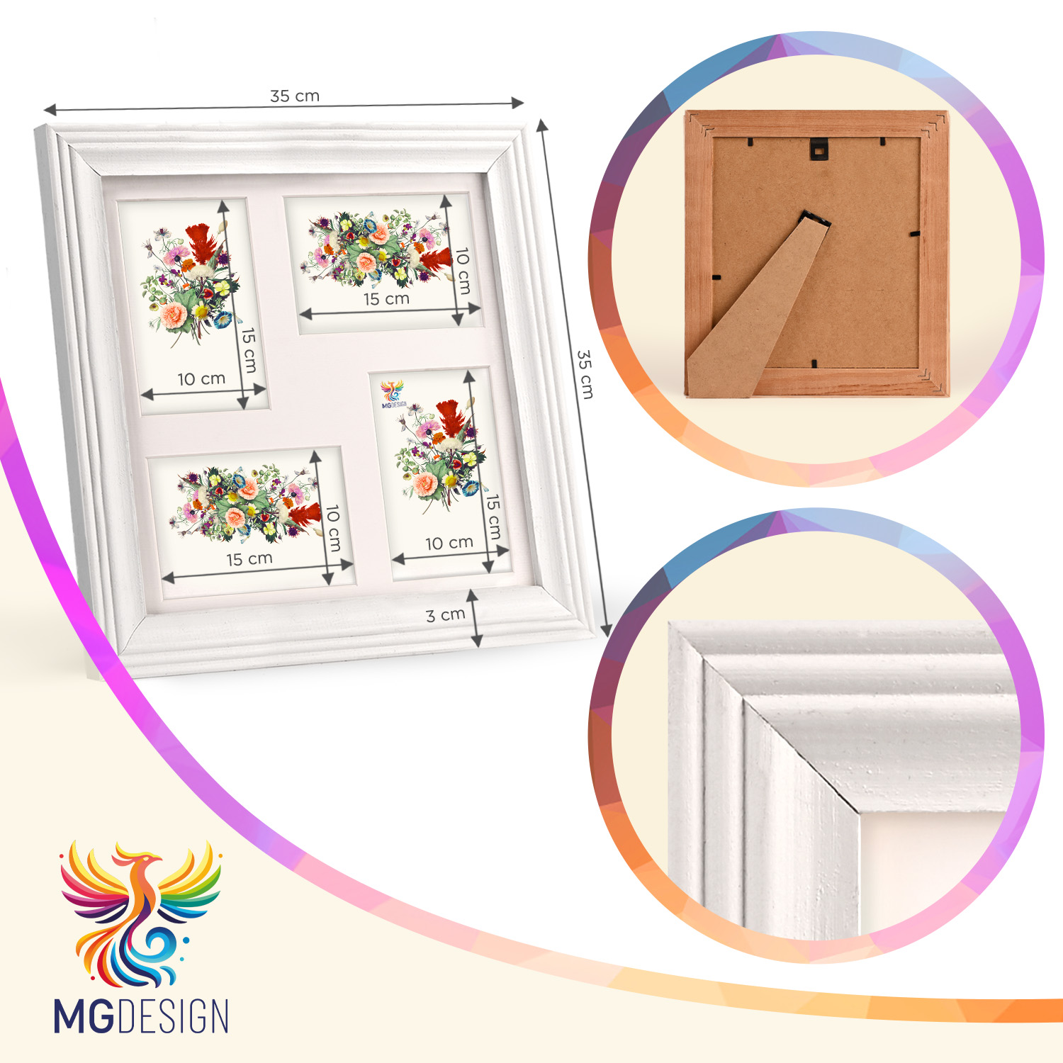 Zestaw 3 galerii - ramek frezowanych na 4 zdjęcia: 4x 10 x 15 cm białych