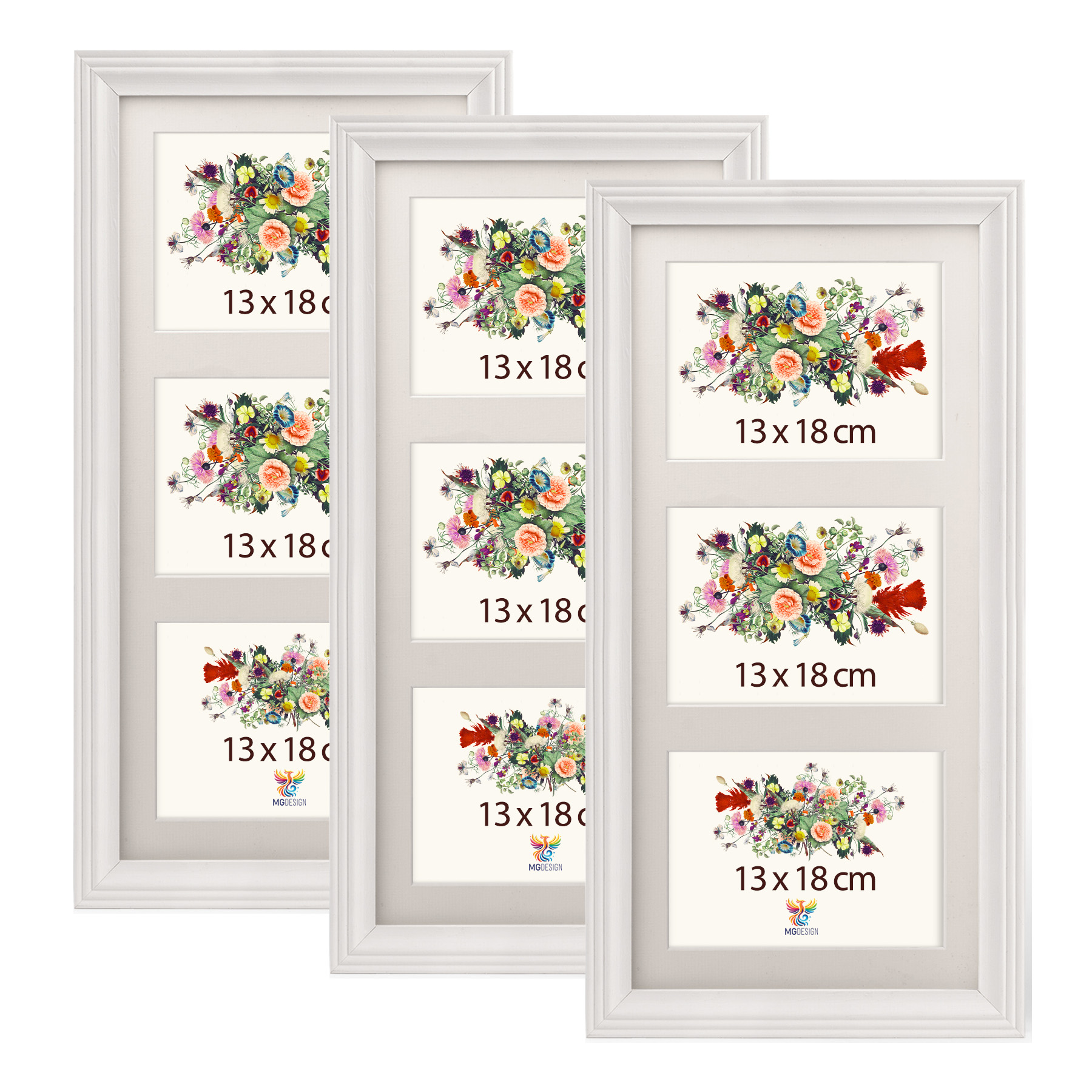 Zestaw 3 galerii - ramek wysokich na 3 zdjęcia: 3x 13 x 18 cm białych