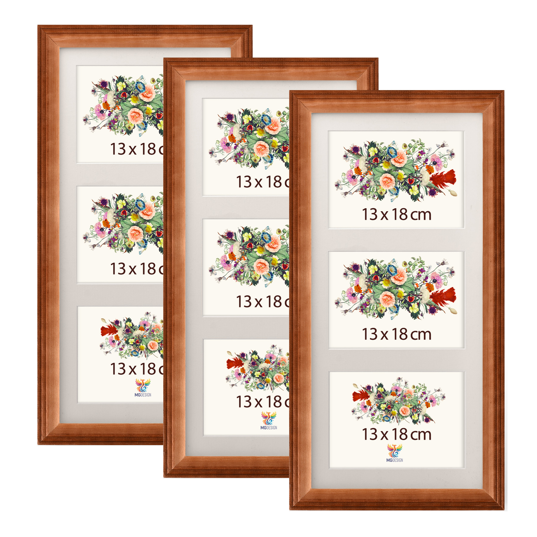 Zestaw 3 galerii - ramek wysokich na 3 zdjęcia: 3x 13 x 18 cm brązowych