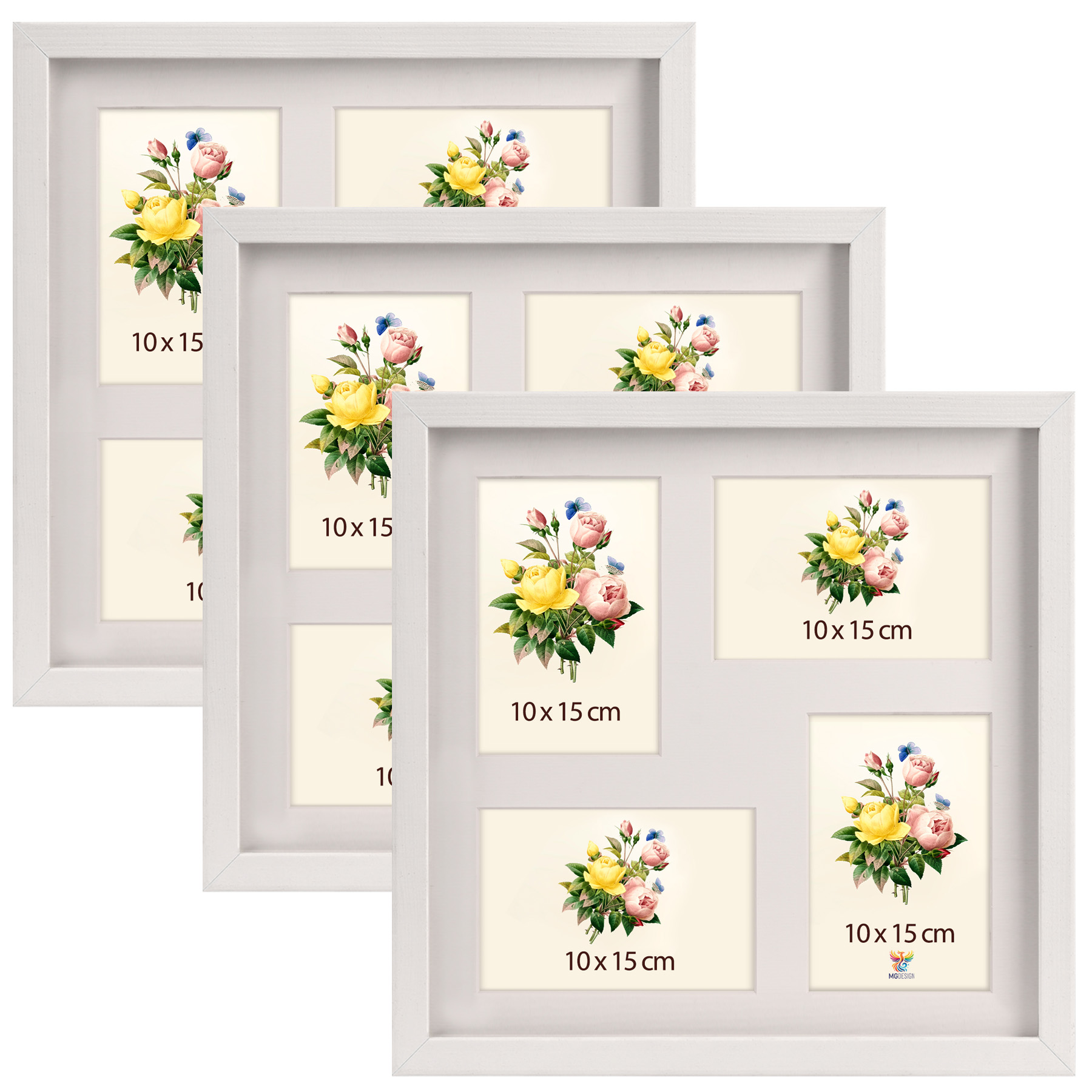 Zestaw 3 galerii - ramek wysokich na 4 zdjęcia: 4x 10 x 15 cm białych