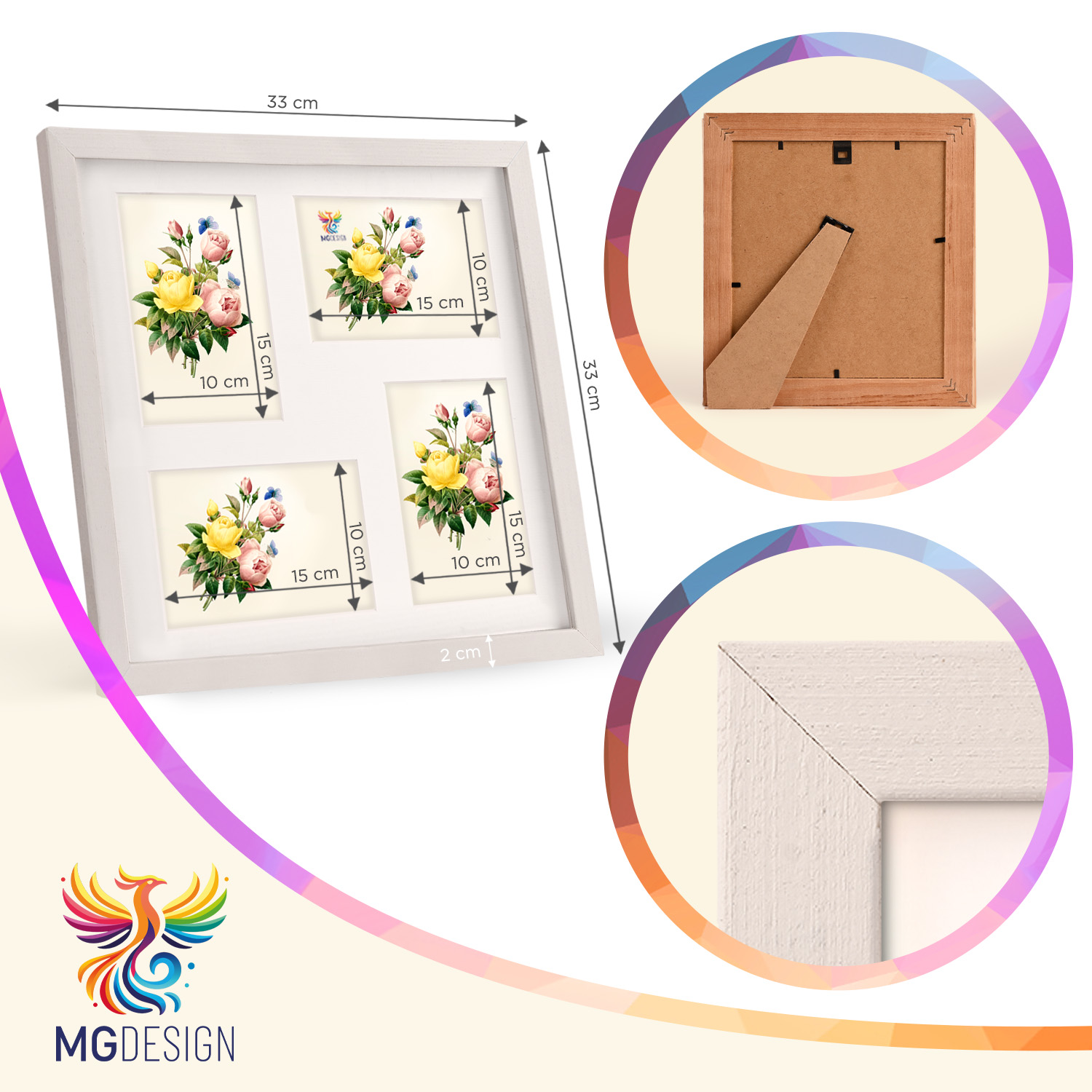 - rozmiar: 33 x 33 cm - 4 zdjęcia 10 x 15 cm