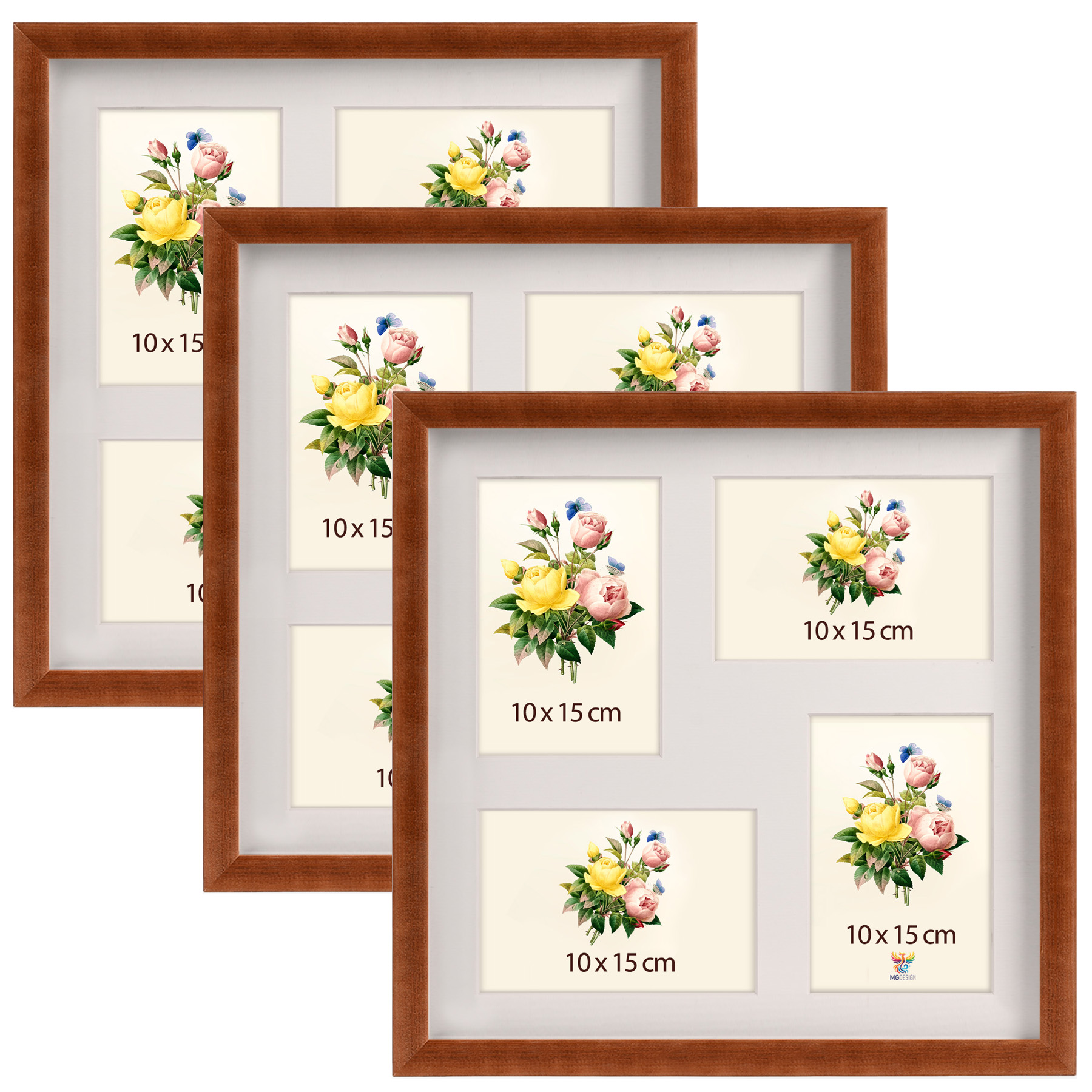 Zestaw 3 galerii - ramek wysokich na 4 zdjęcia: 4x 10 x 15 cm brązowych