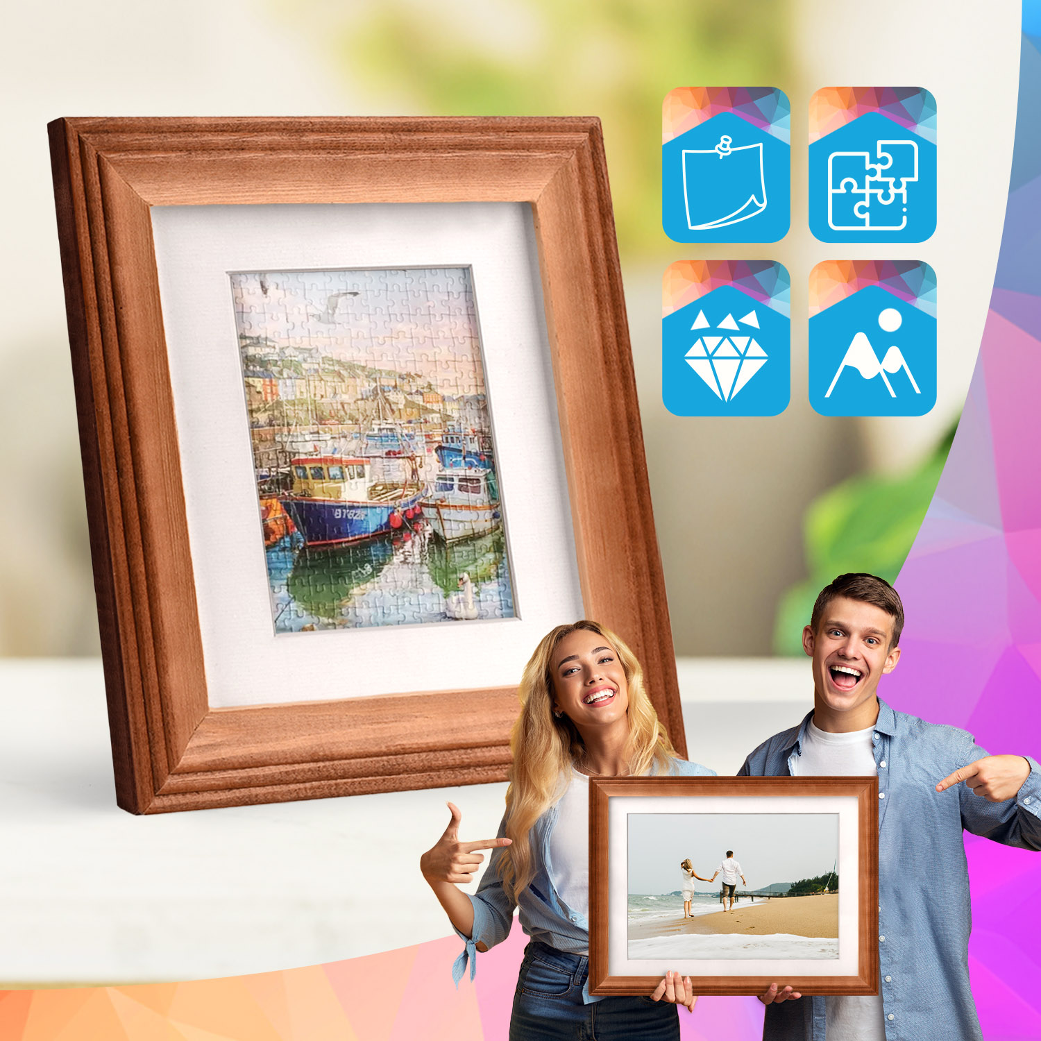 Zestaw frezowanych ramek drewnianych to estetyczne i spójne rozwiązanie do oprawy zdjęć, plakatów, grafik oraz wydruków artystycznych. Dekoracyjny, precyzyjnie wykonany profil ram nadaje całej kompozycji elegancki charakter i podkreśla prezentowane motywy, zachowując uporządkowany i harmonijny wygląd aranżacji.