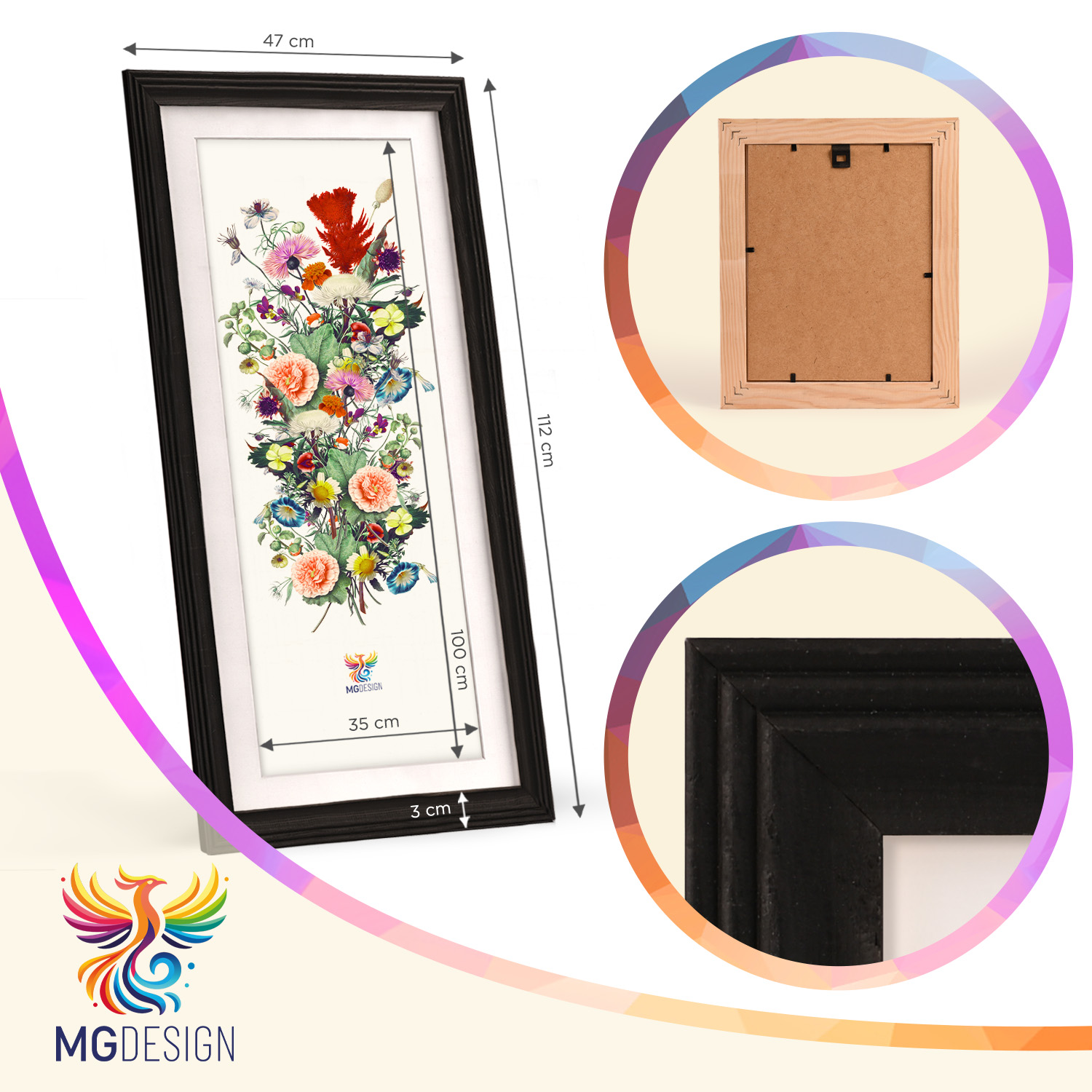 Ramki przeznaczone są do montażu na ścianie. Dzięki starannie wykonanemu frezowanemu profilowi całość przylega stabilnie do powierzchni, a prezentowane motywy pozostają centralnym elementem dekoracji. Zestaw doskonale sprawdzi się w domu, biurze oraz na ścianach galeryjnych.