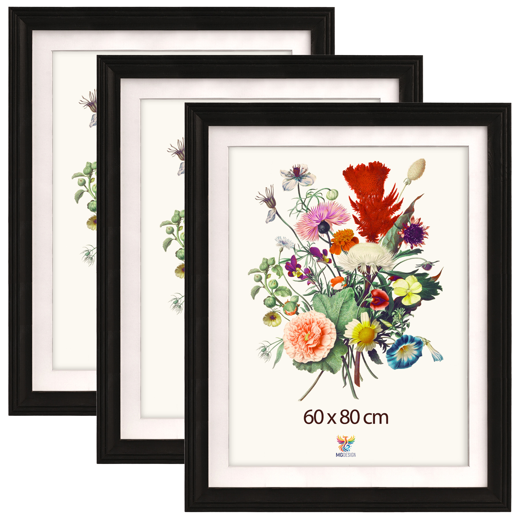 Zestaw 3 szt. frezowanych ramek 60 x 80 cm w kolorze czarnym