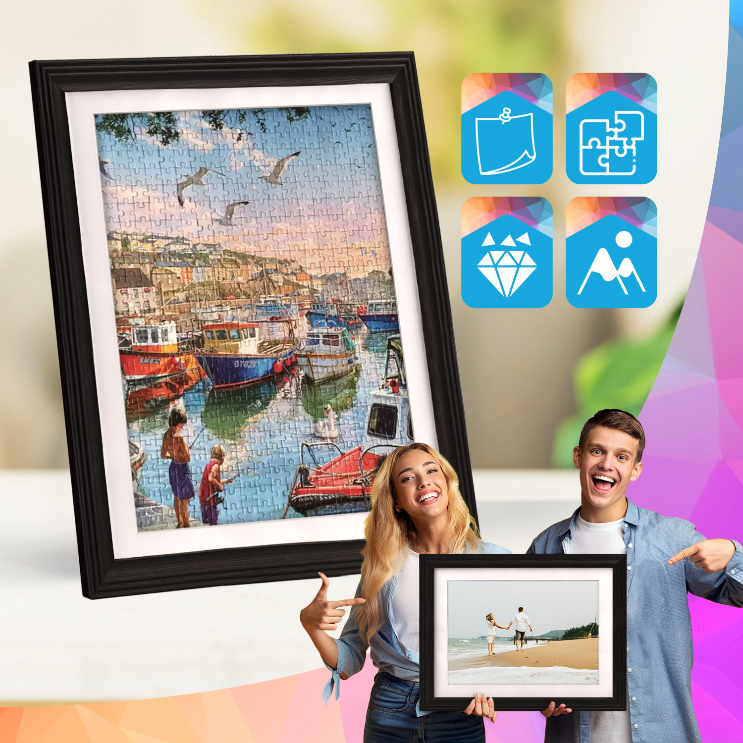 Ramki przeznaczone są do montażu na ścianie. Dzięki starannie wykonanemu frezowanemu profilowi całość przylega stabilnie do powierzchni, a prezentowane motywy pozostają centralnym elementem dekoracji. Zestaw doskonale sprawdzi się w domu, biurze oraz na ścianach galeryjnych.