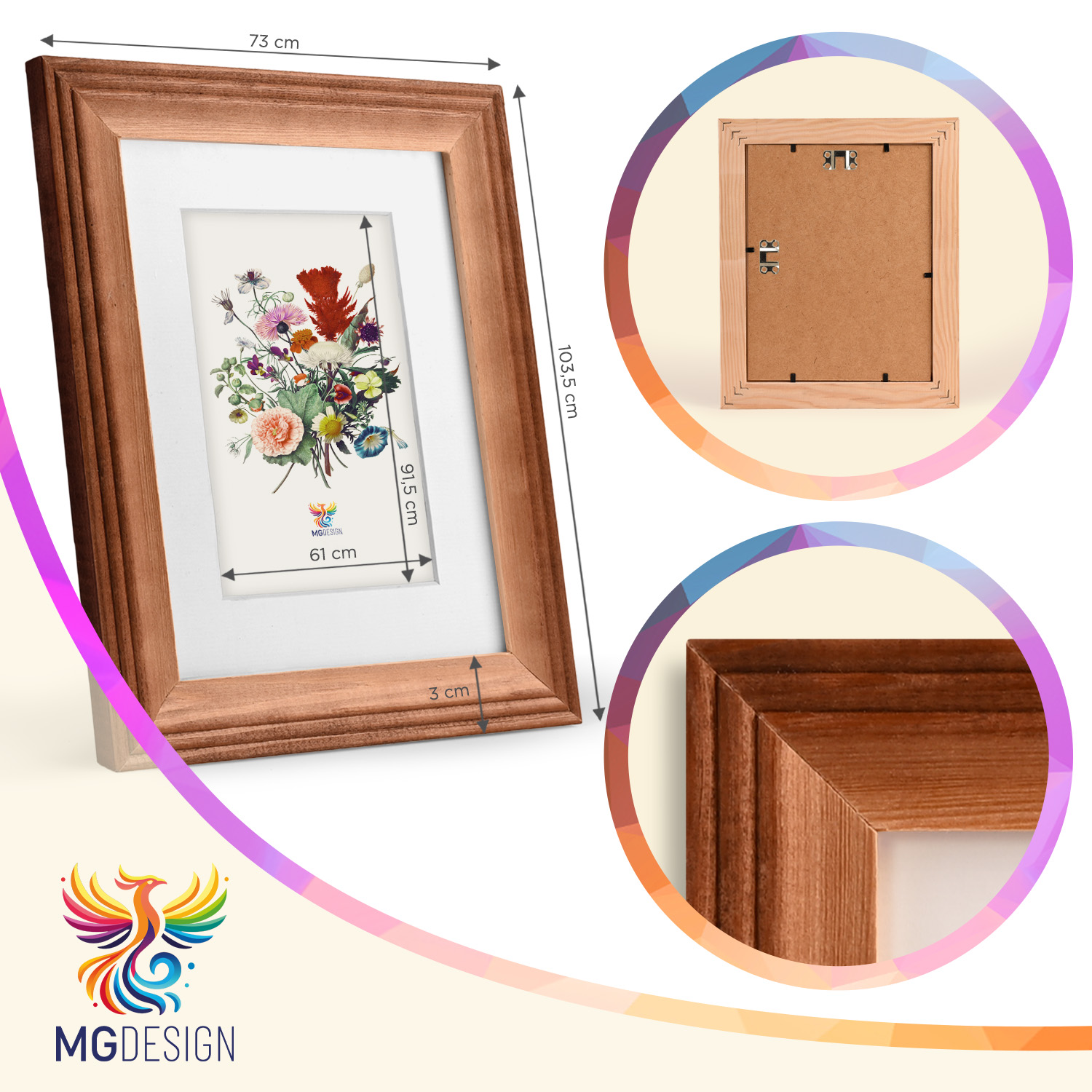 Zestaw frezowanych ramek drewnianych to estetyczne i spójne rozwiązanie do oprawy zdjęć, plakatów, grafik oraz wydruków artystycznych. Dekoracyjny, precyzyjnie wykonany profil ram nadaje całej kompozycji elegancki charakter i podkreśla prezentowane motywy, zachowując uporządkowany i harmonijny wygląd aranżacji.