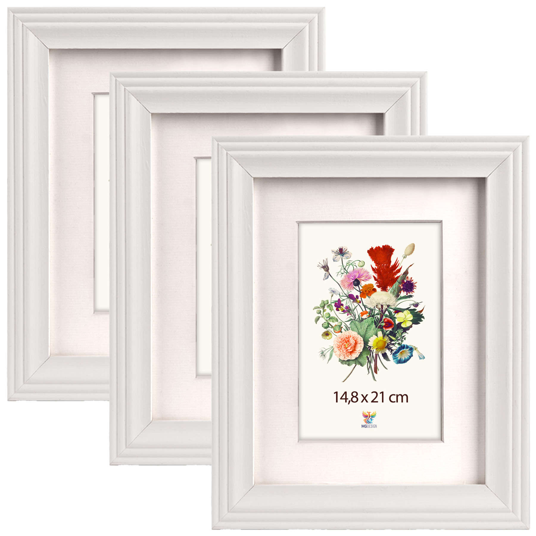 Zestaw 3 szt. frezowanych ramek A5 14,8 x 21 cm w kolorze białym