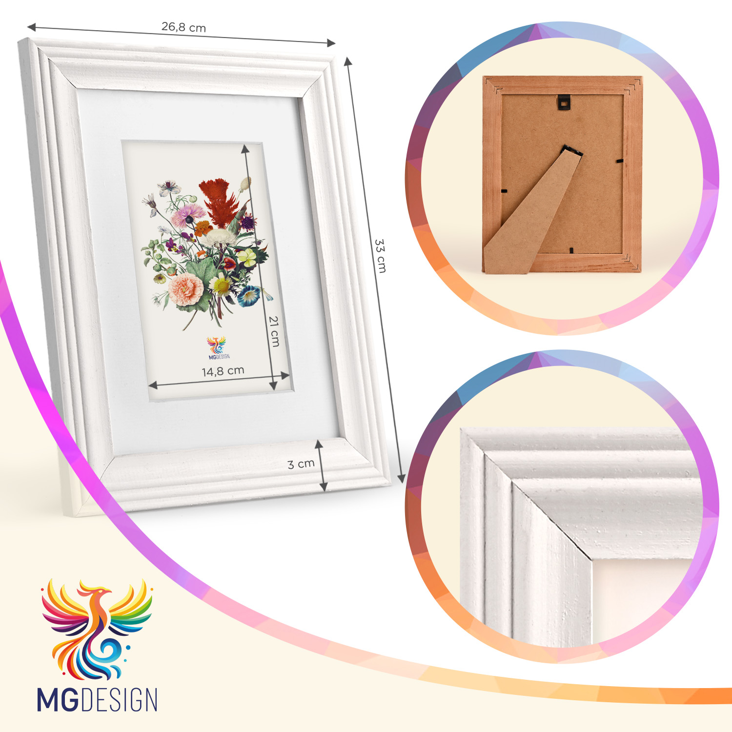 - kolor ramy: biały