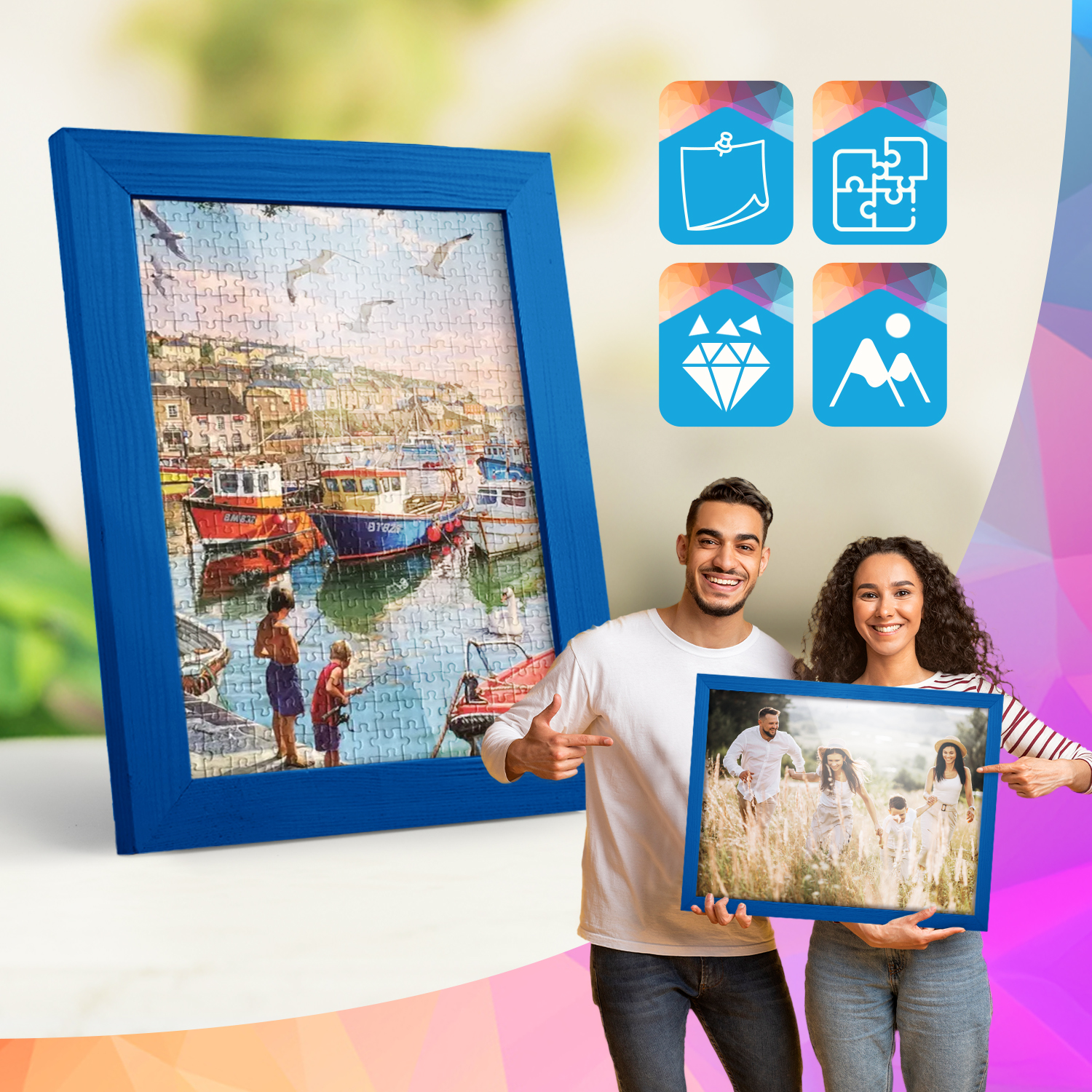 Zestaw drewnianych ramek to estetyczne i uniwersalne rozwiązanie do oprawy zdjęć, plakatów, grafik oraz wydruków dekoracyjnych. Klasyczny, profil ramek nadaje całej kompozycji elegancki wygląd i podkreśla prezentowane motywy, zachowując spójny i uporządkowany charakter aranżacji.