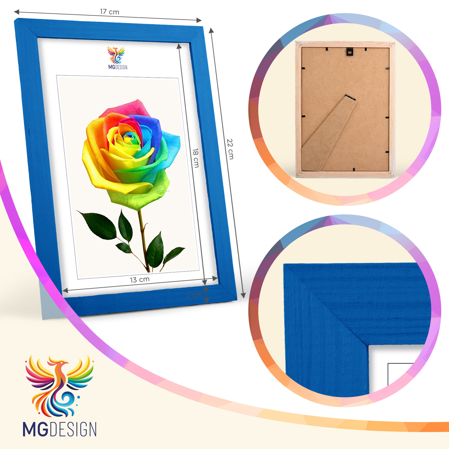 Zestaw 3 szt. ramek na zdjęcia 13 x 18 cm niebieskich, z naturalnego drewna