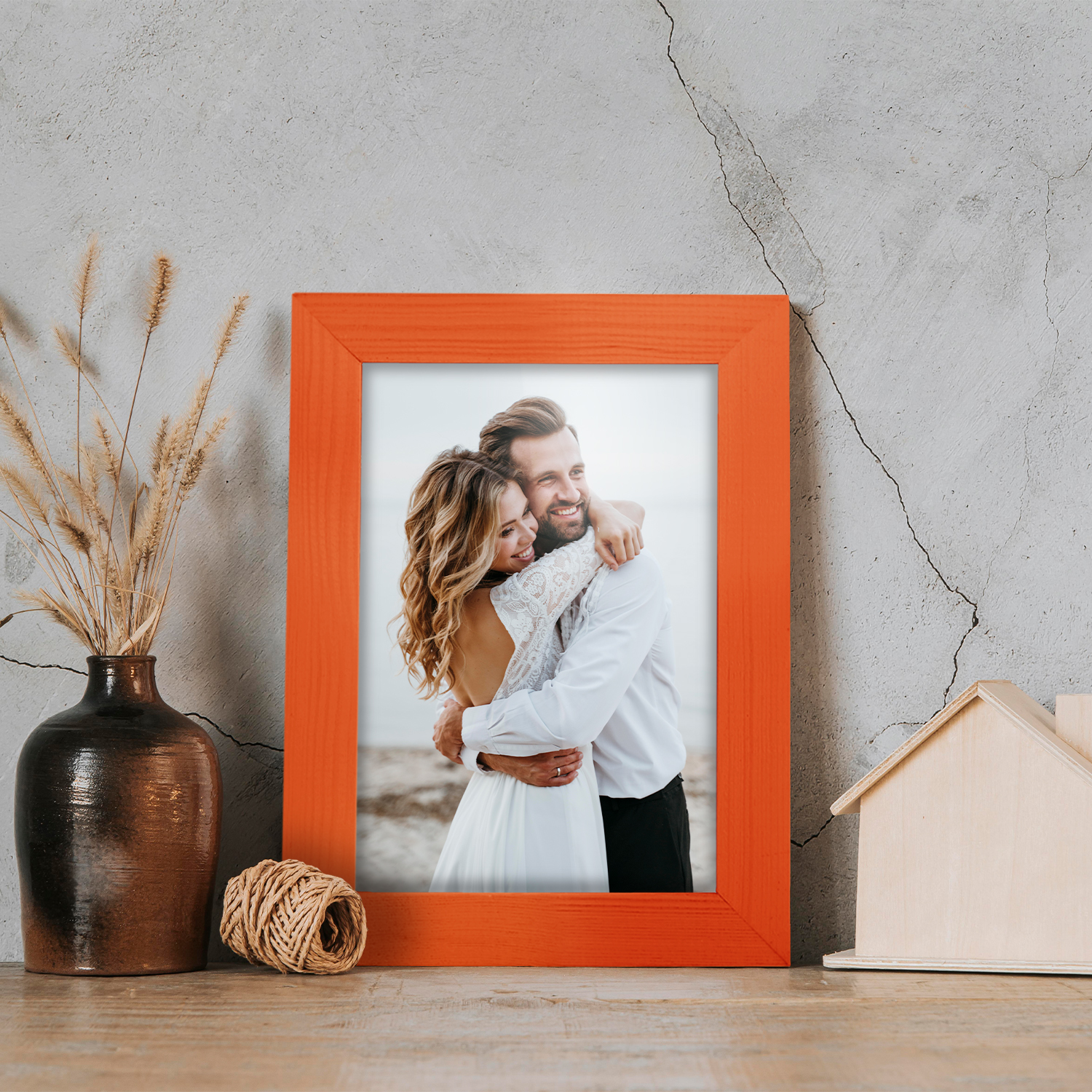 Zestaw 3 szt. ramek na zdjęcia 13 x 18 cm pomarańczowych, z naturalnego drewna