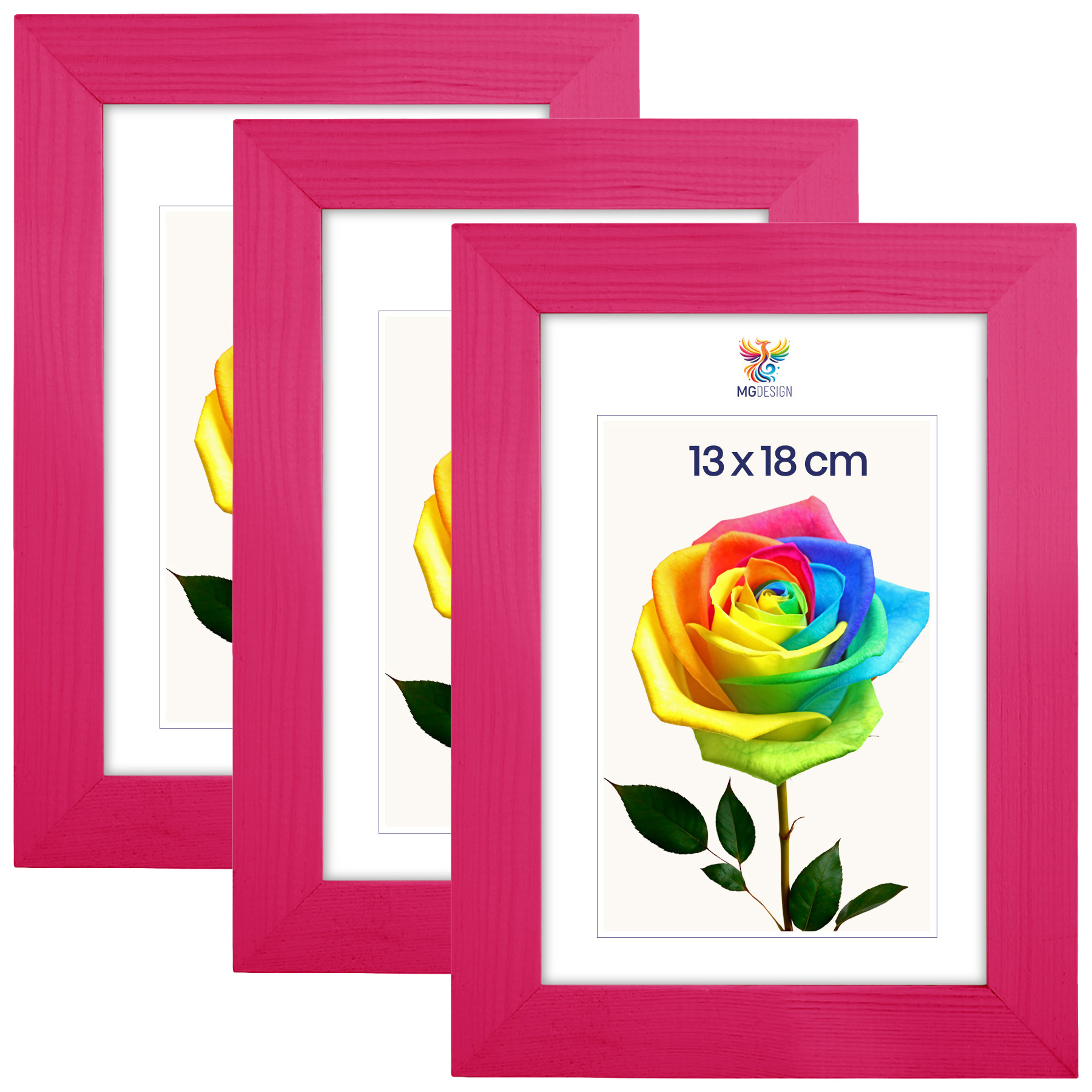 Zestaw 3 szt. ramek na zdjęcia 13 x 18 cm różowych, z naturalnego drewna