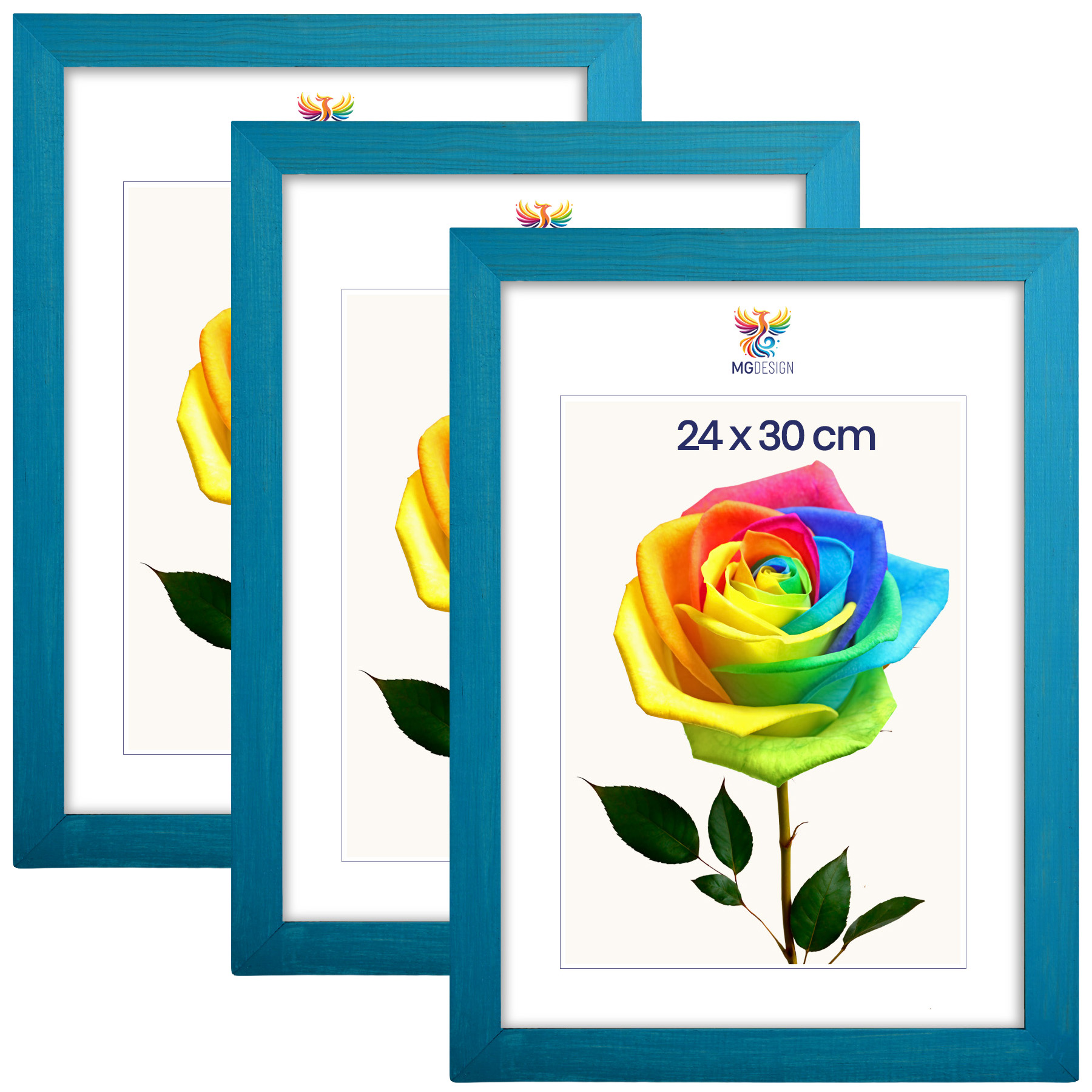 Zestaw 3 szt. ramek na zdjęcia 24 x 30 cm turkusowych, z naturalnego drewna