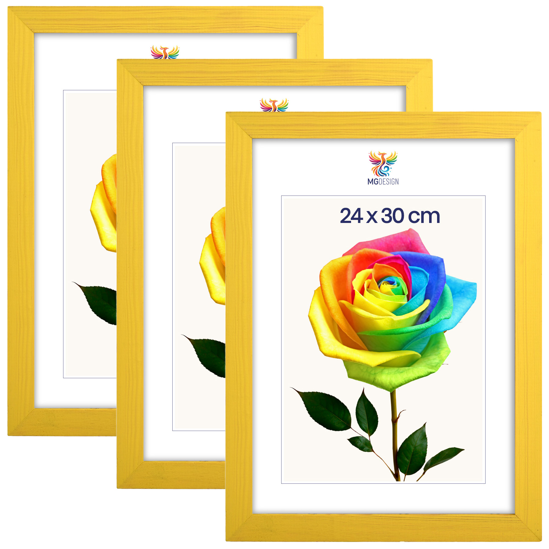 Zestaw 3 szt. ramek na zdjęcia 24 x 30 cm żółtych, z naturalnego drewna