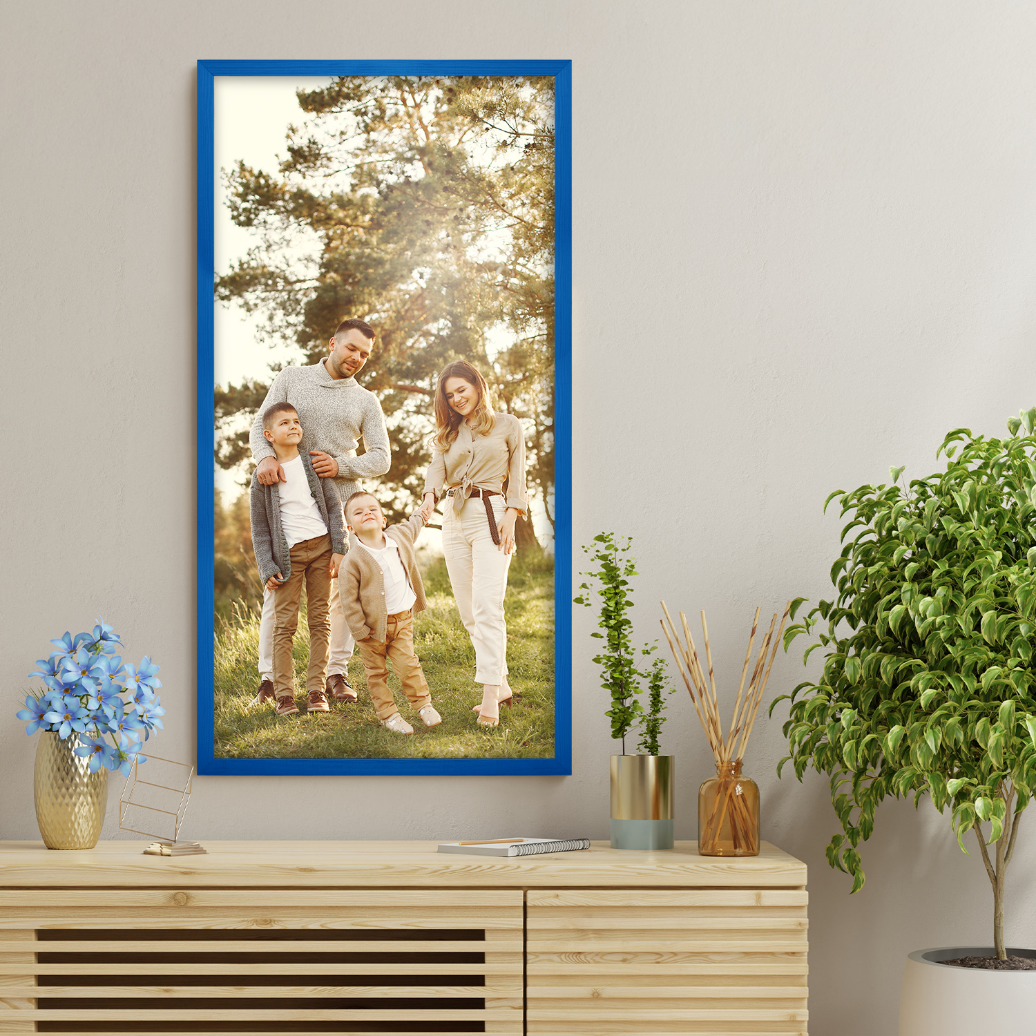 Zestaw 3 szt. ramek na zdjęcia 30 x 60 cm niebieskich, z naturalnego drewna